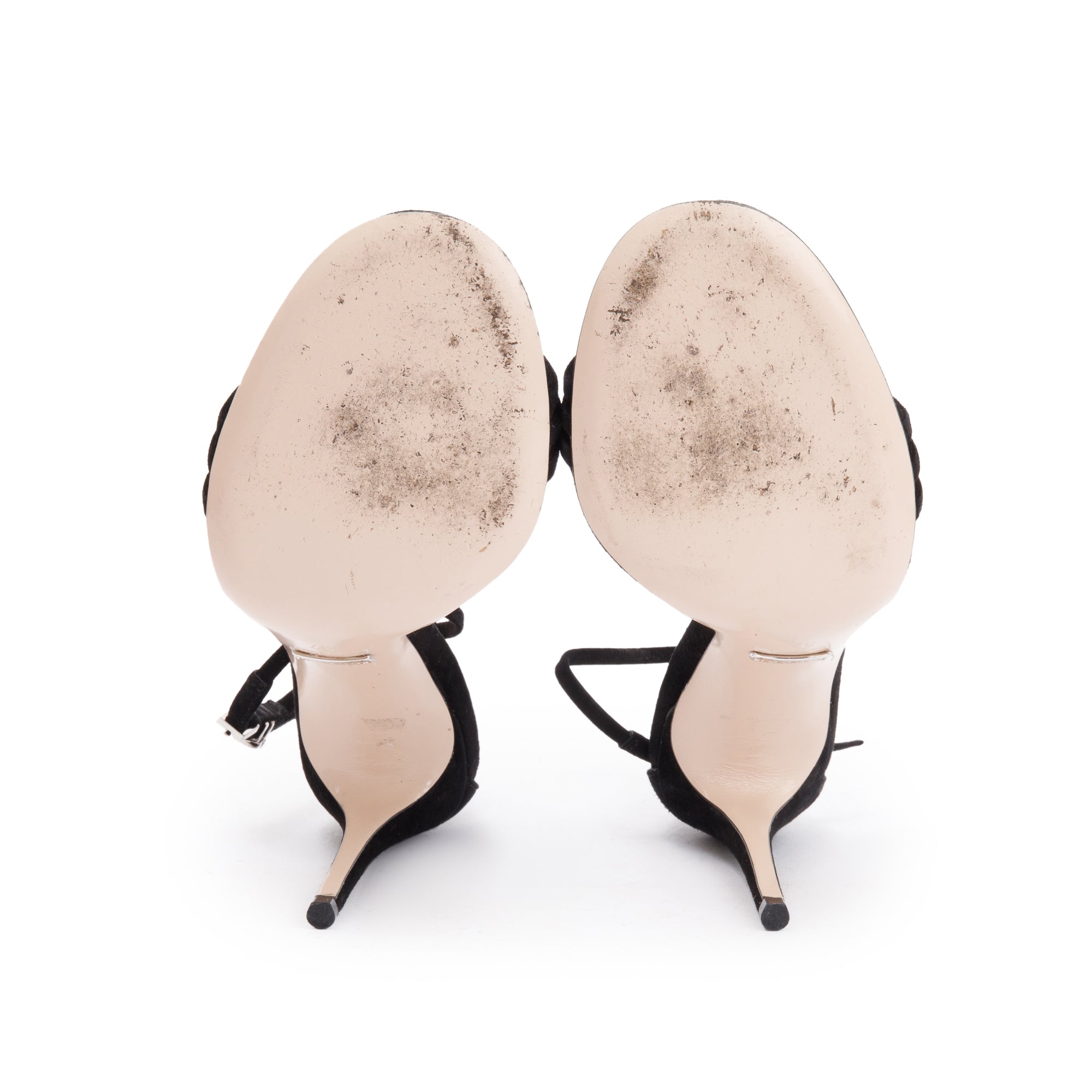 Black Suede Kid Scamosciato Sandals, Size 37 w/ Box