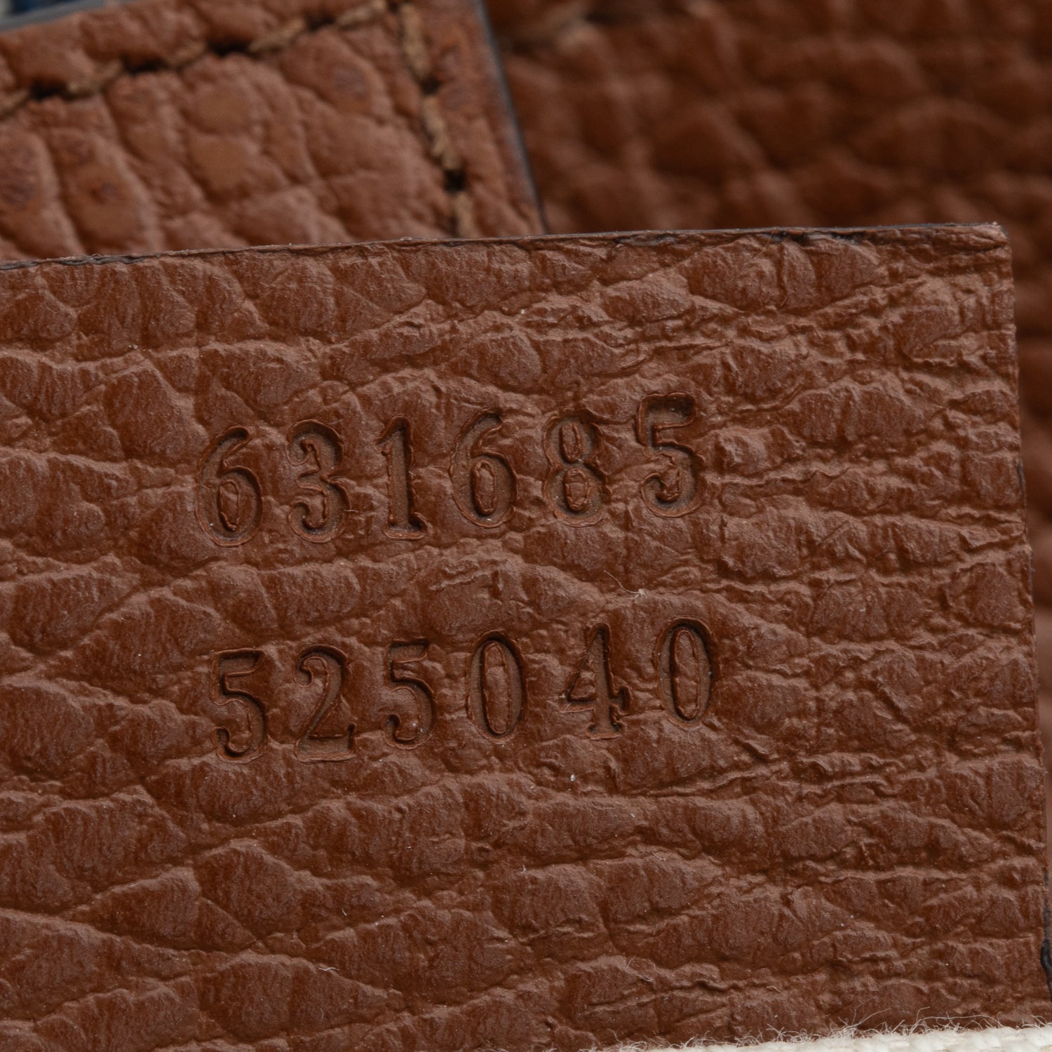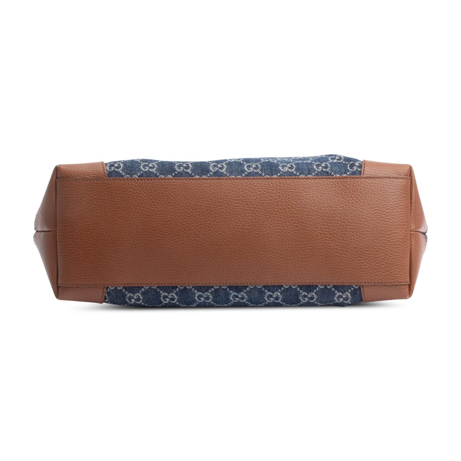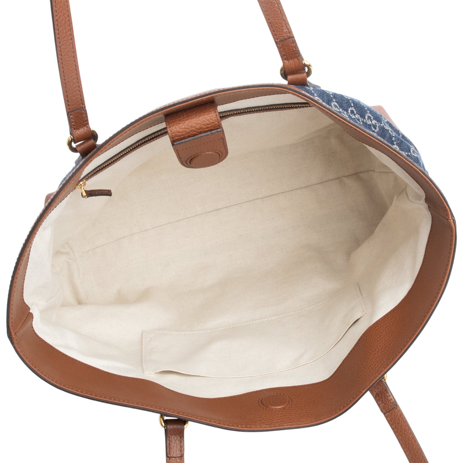 Blue GG Denim Brown Leather Trim Ophidia GG Medium Tote