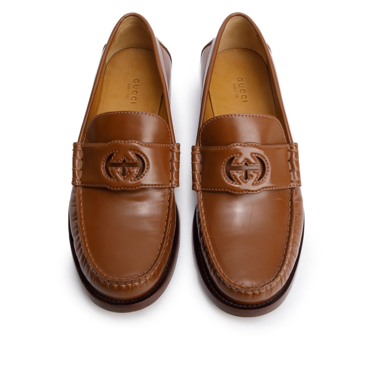 Brown Leather Interlocking G Women's Loafers, Size 40