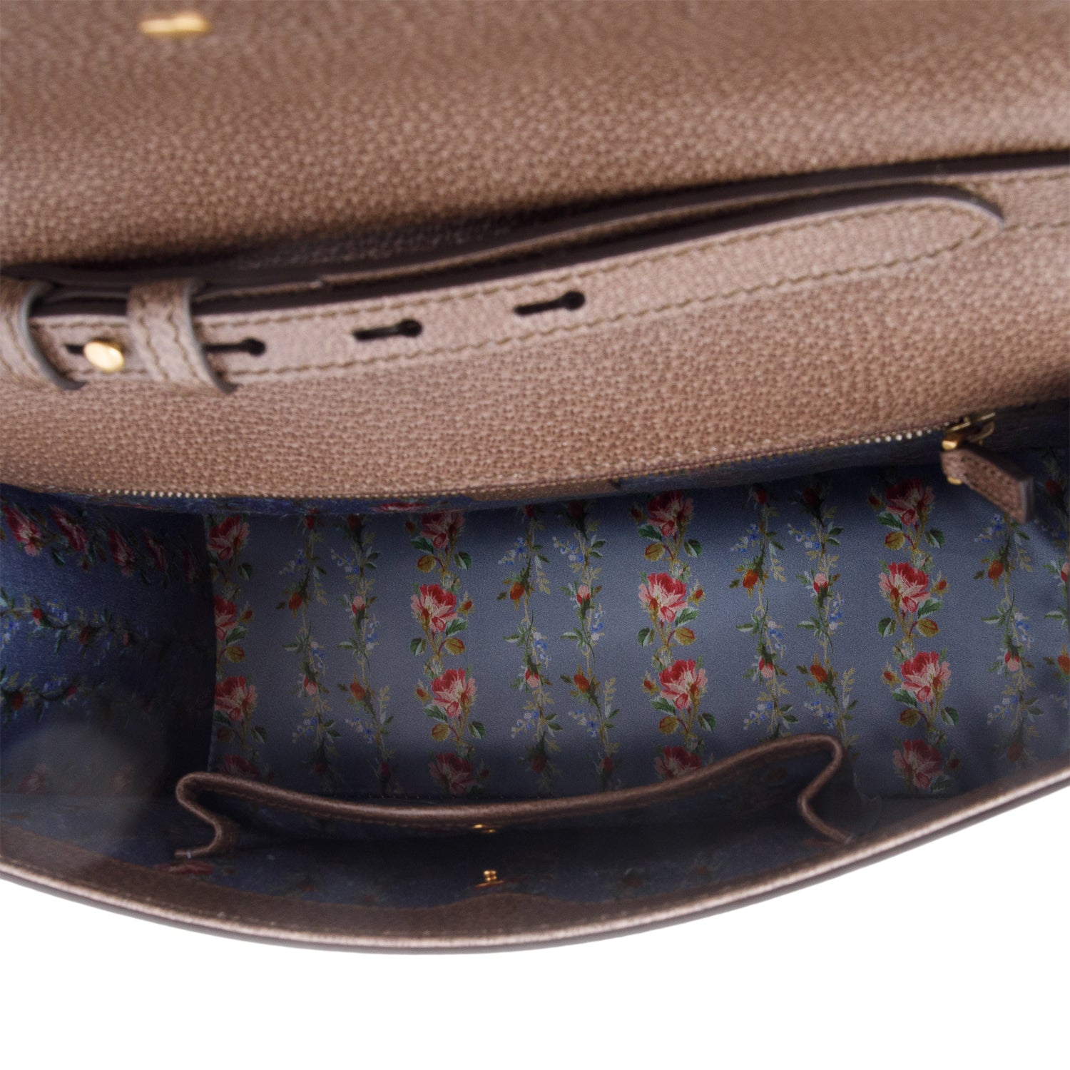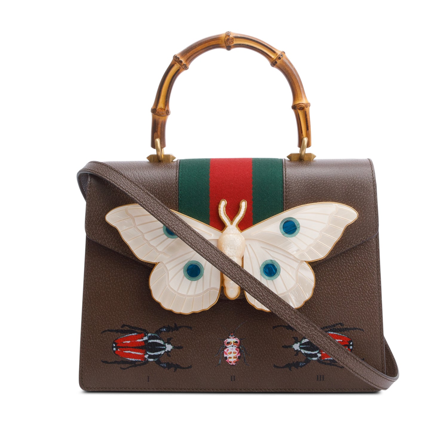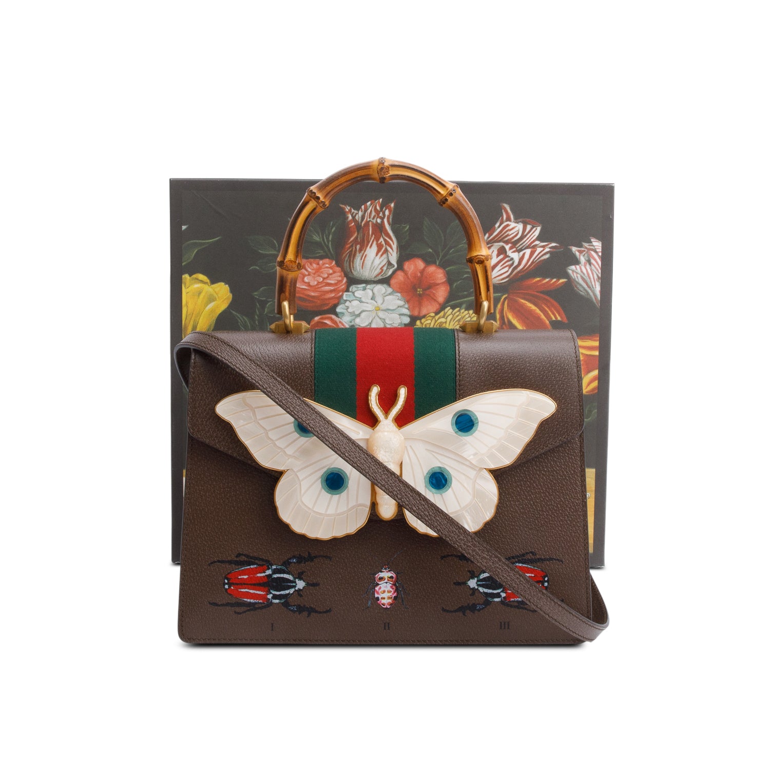 Brown Leather Mother of Pearl Felena Bamboo Medium Top Handle Bag w/ Strap & Box