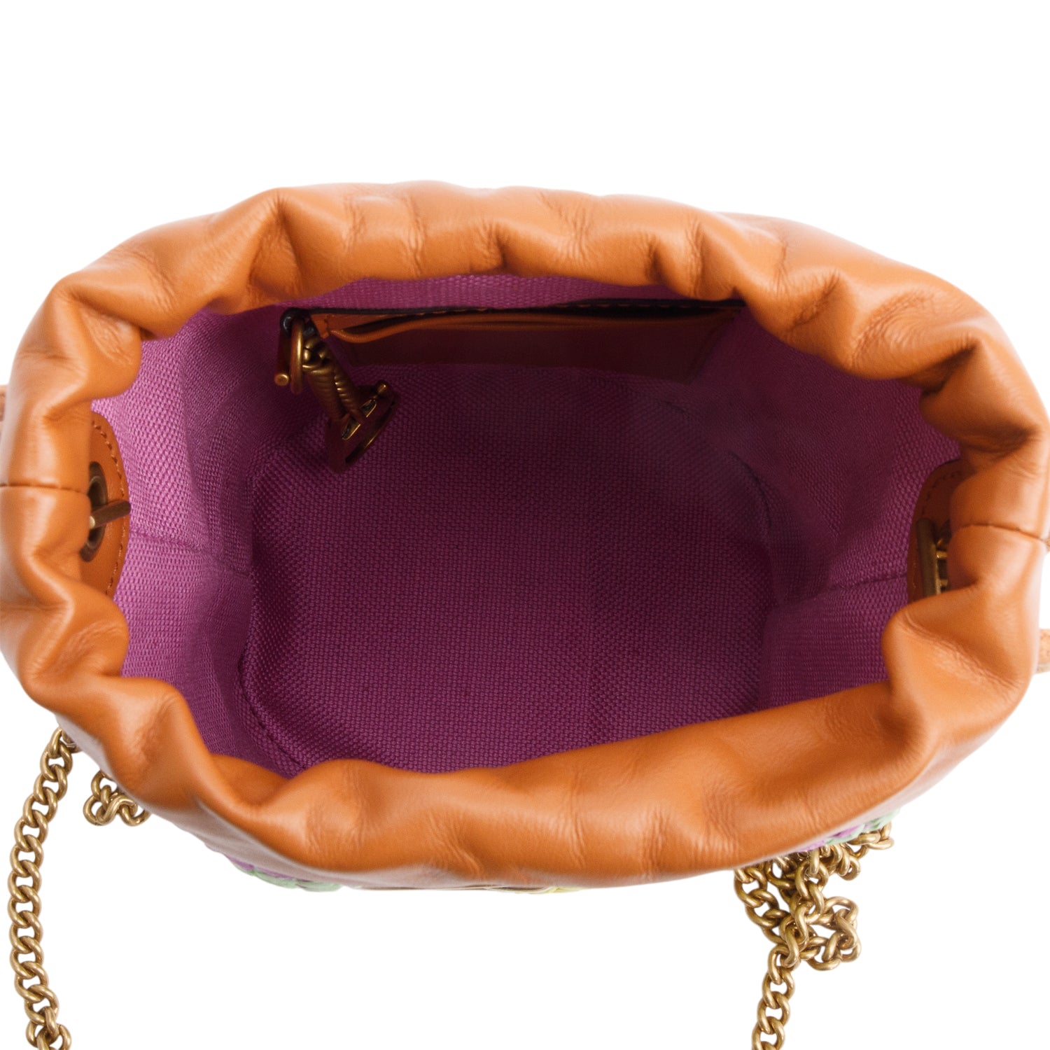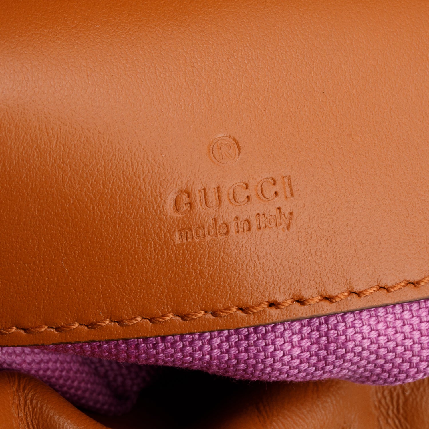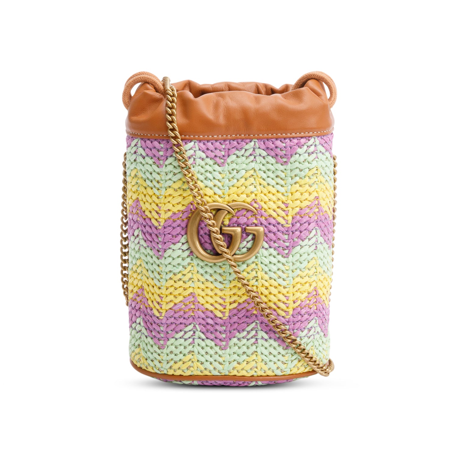 Brown Leather Multicolor Chevron Knit Raffia GG Marmont Mini Bucket Bag