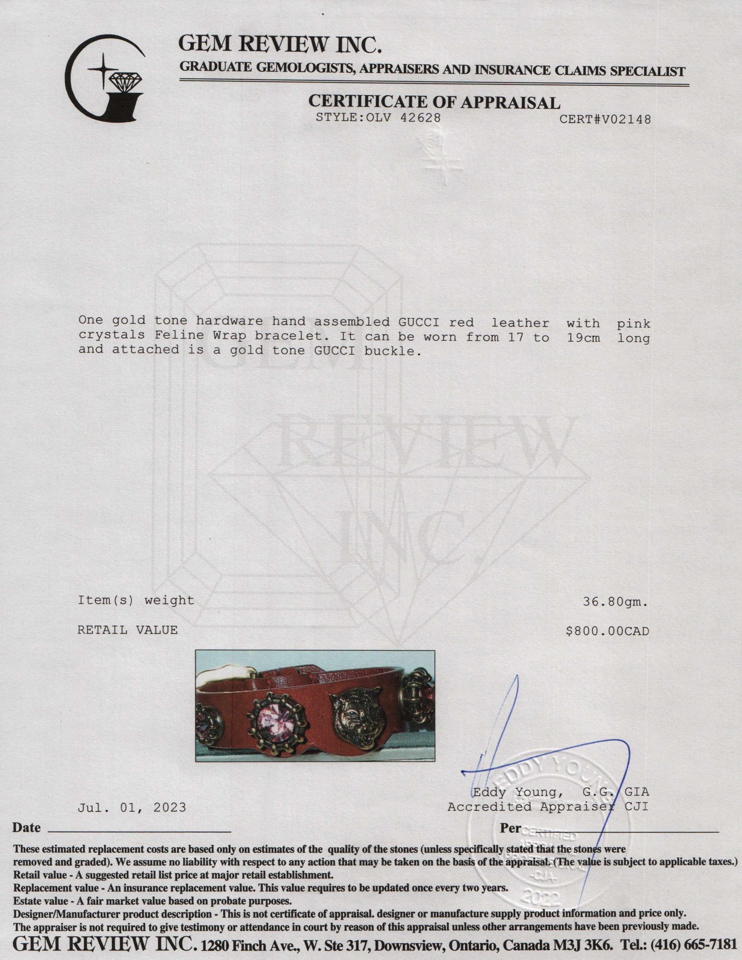 Gucci Crystal & Leather Feline Wrap Bracelet