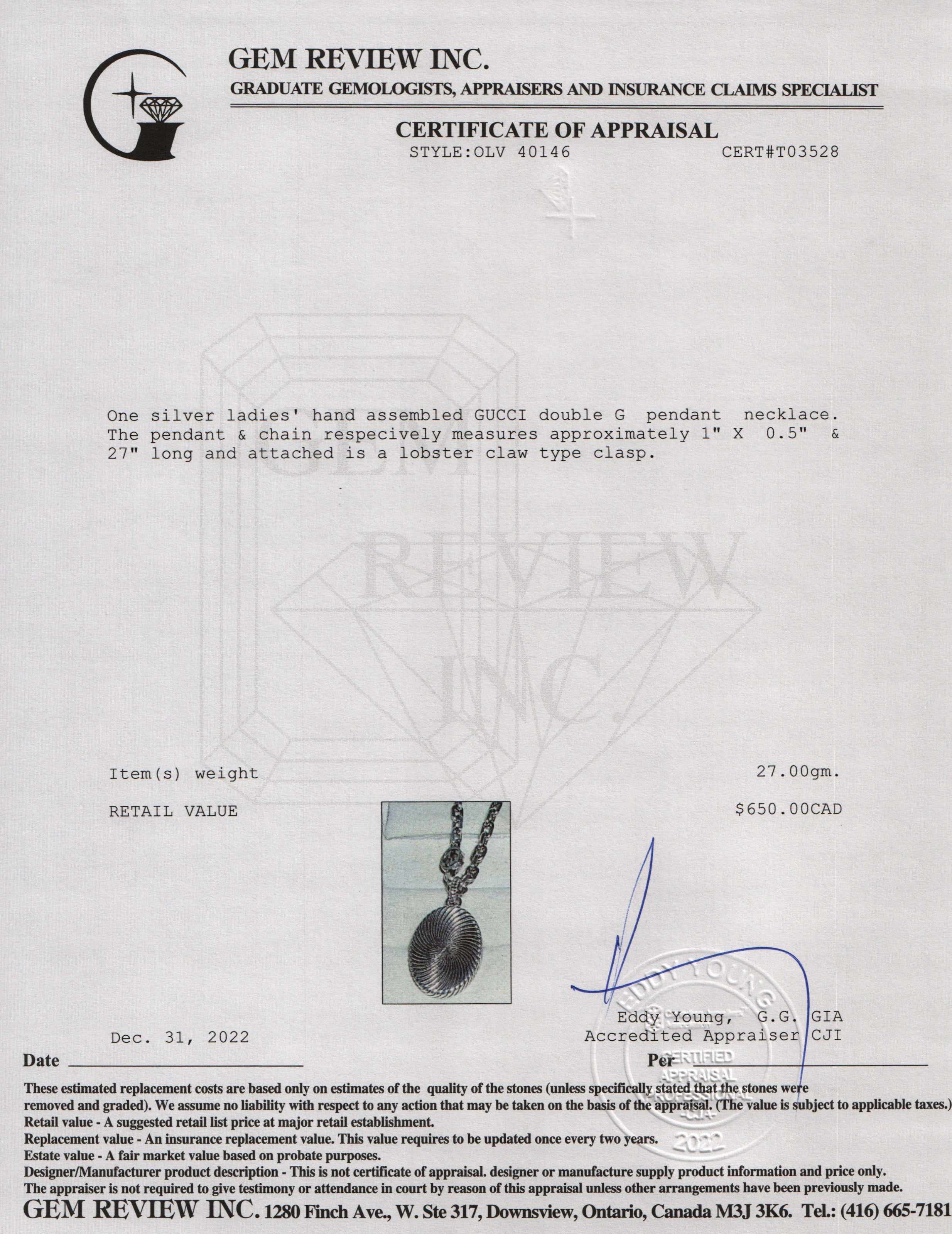 Included Items: Original Gucci Box, Pouch & Gem Review Appraisal