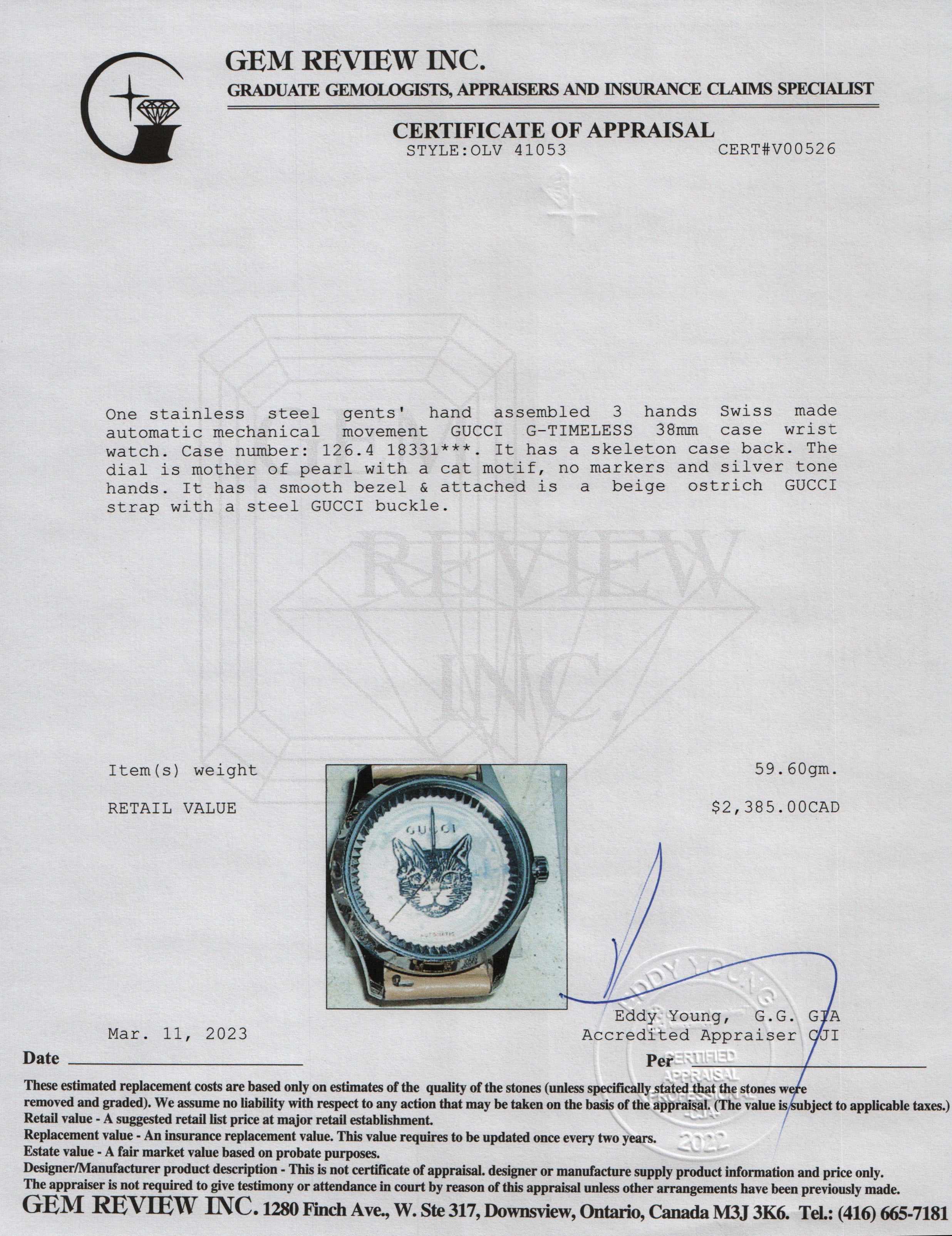 Included Items: Original Gucci Box & Gem Review Appraisal