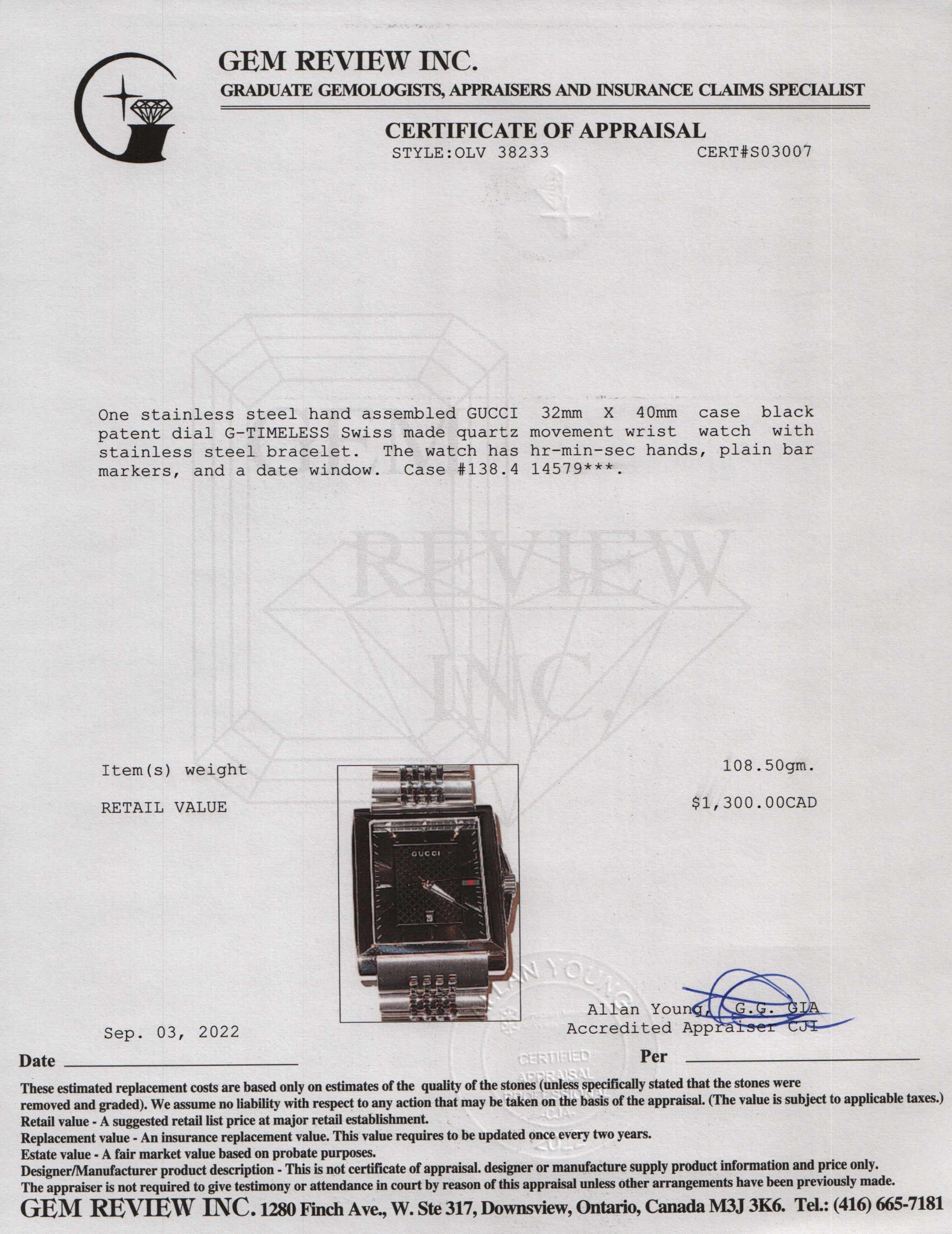 Included Items: Original Gucci Box , Booklet & Gem Review Appraisal