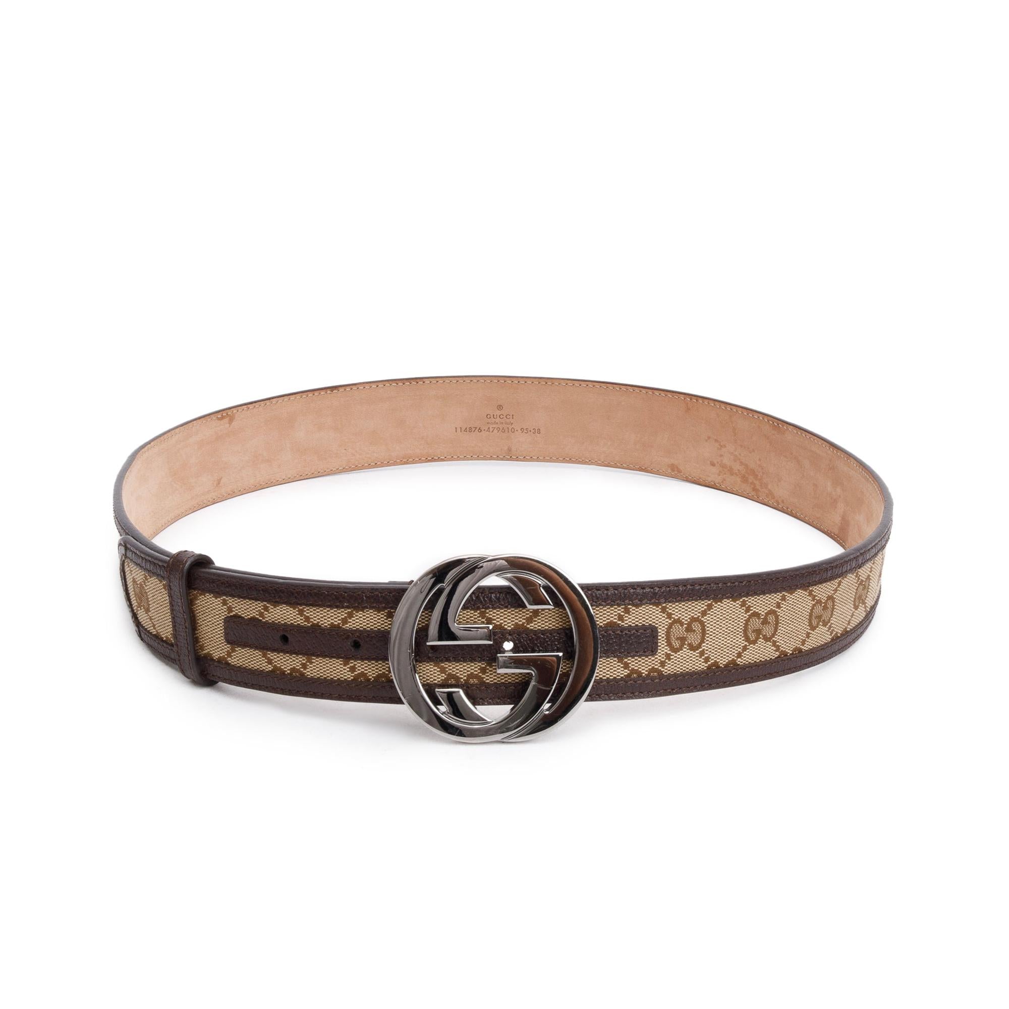 GG Canvas & Brown Leather Belt With Interlocking G Buckle 95 38