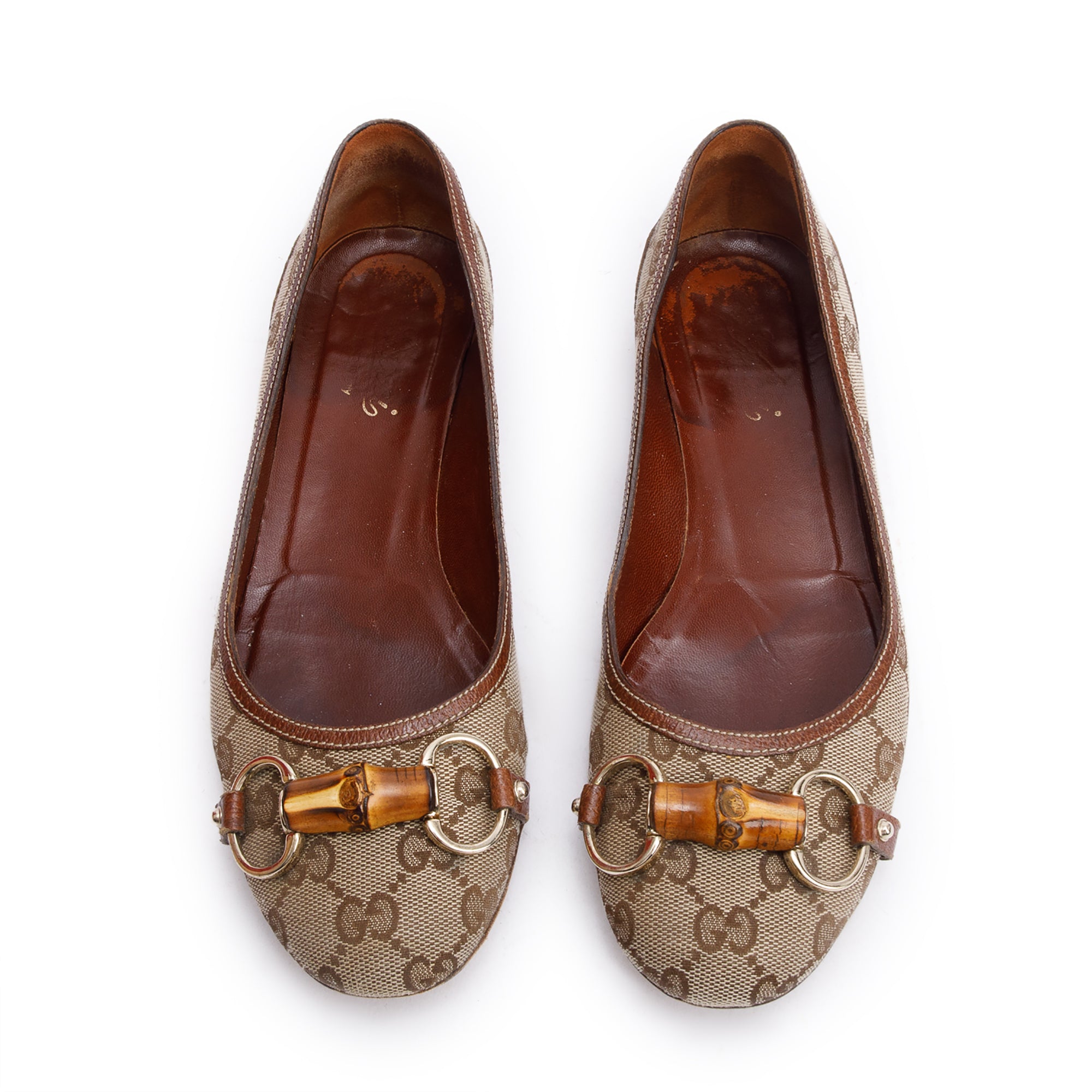 GG Canvas Horsebit Bamboo Accent Ballet Flats, Size 7.5 w/ Box