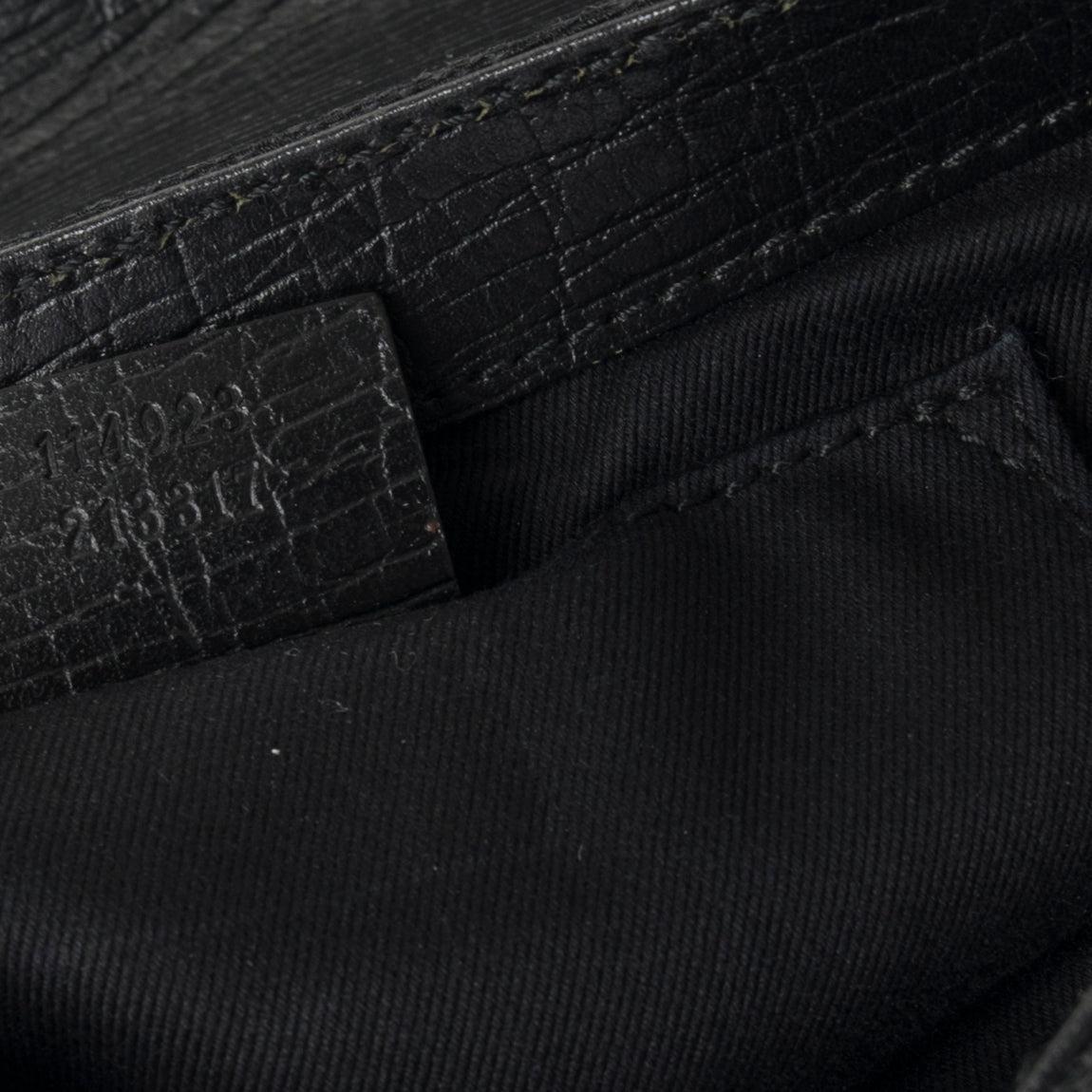 - Fold-In Flap Closure at Front Featuring Horsebit Adornment