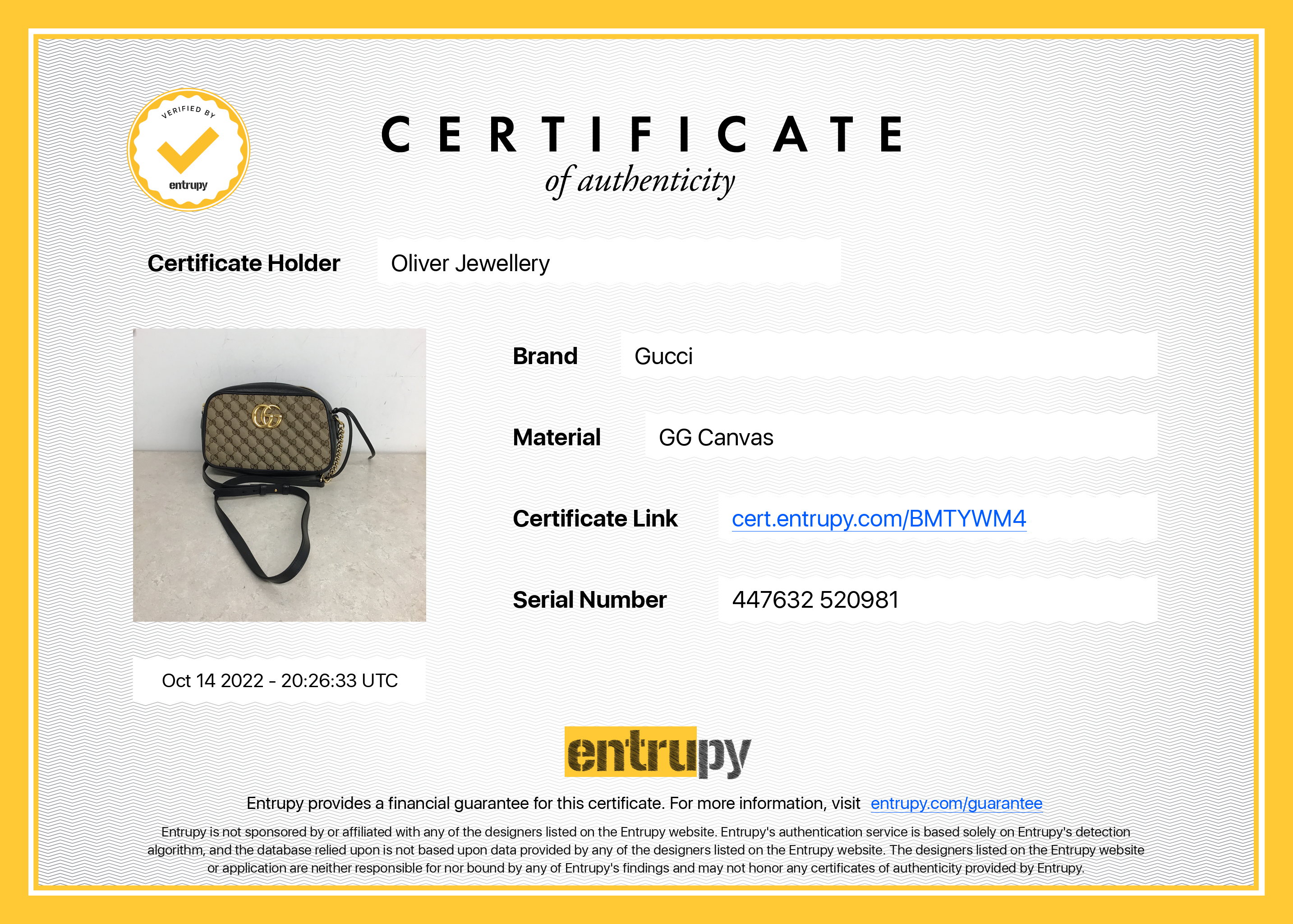 Included Items: Original Gucci Box, Dust Bag, Booklet & Entrupy Certificate of Authenticity #: BMTYWM4