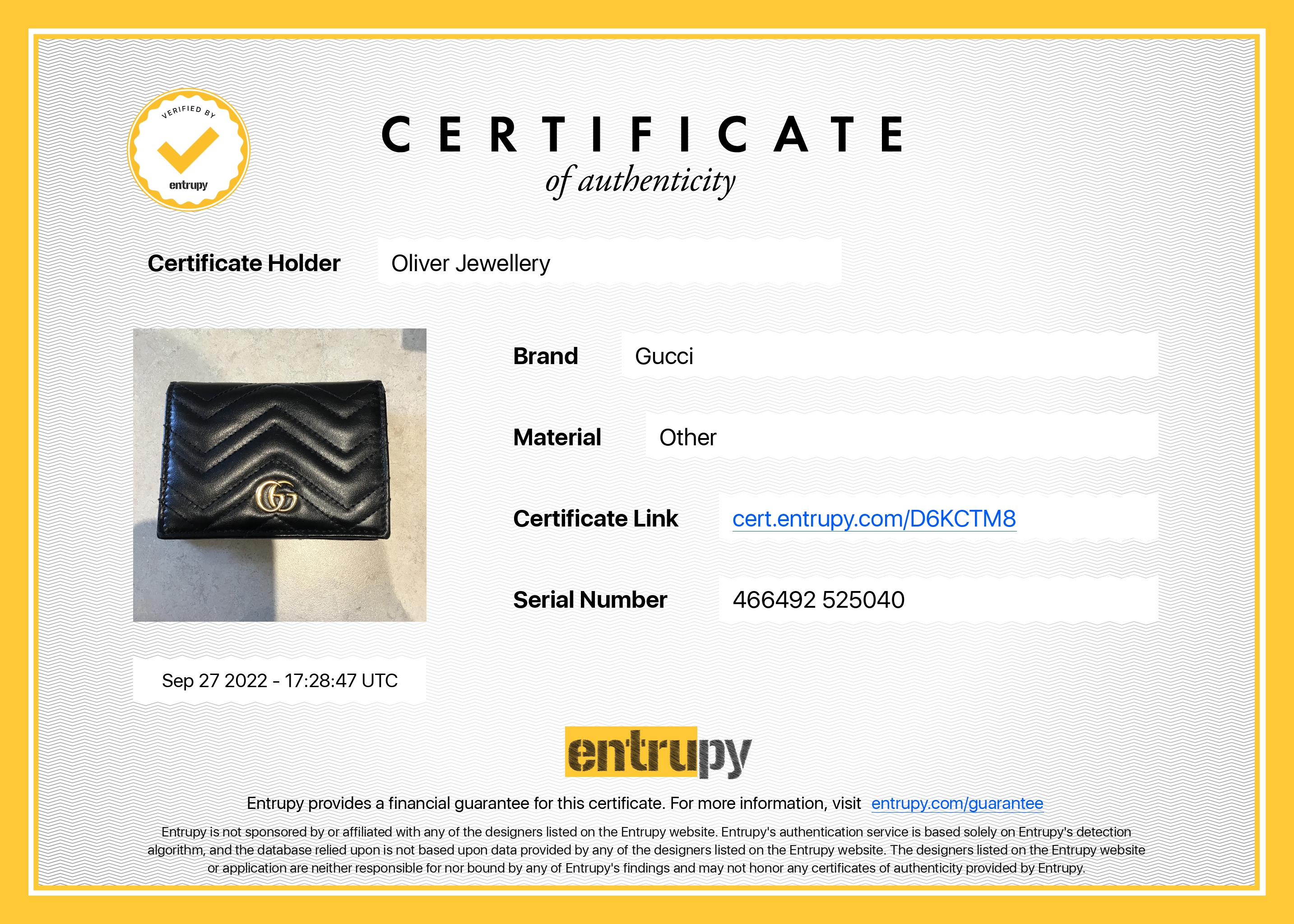 Included Items: Entrupy Certificate of Authenticity #: D6KCTM8