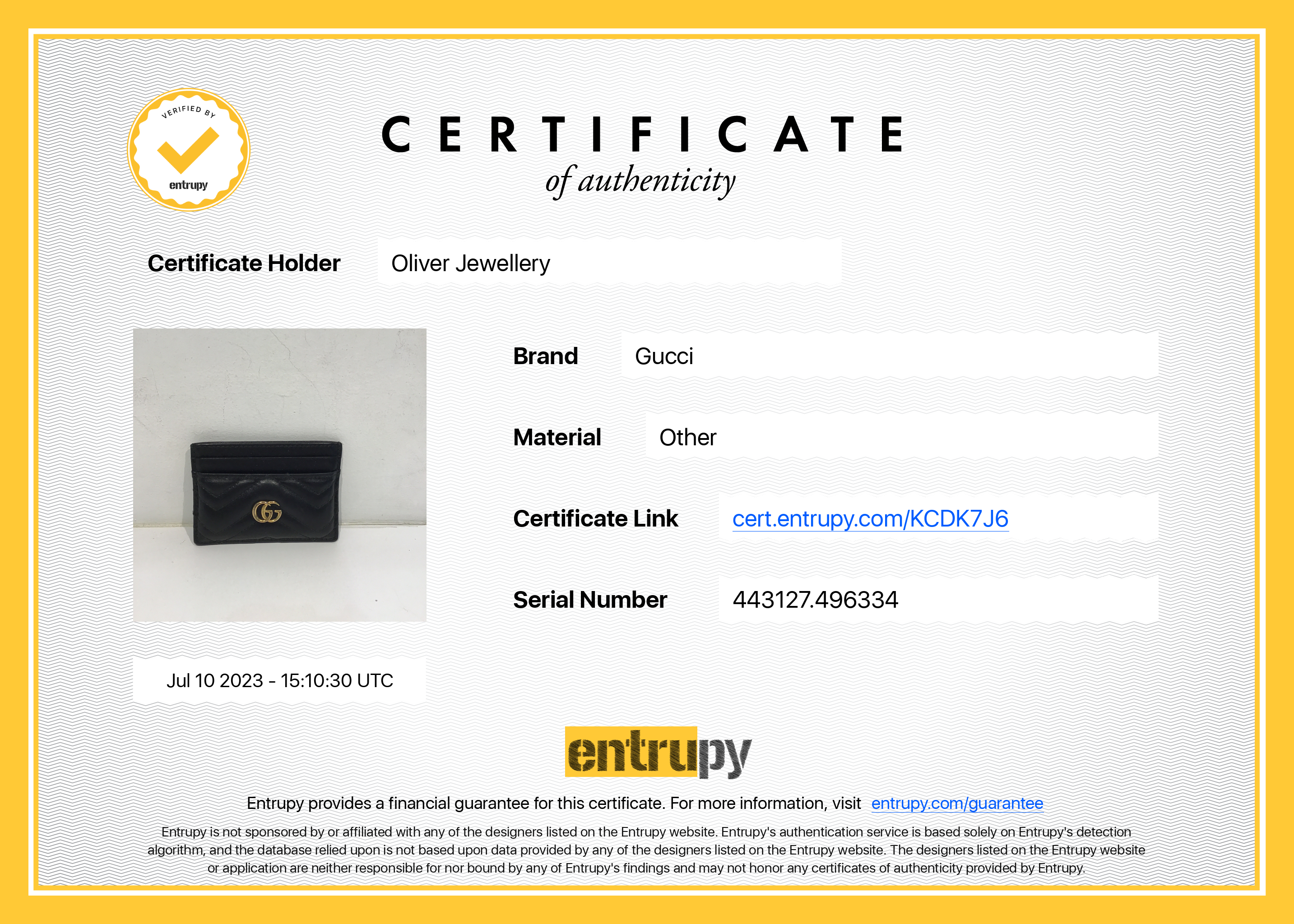 Included Items: Original Gucci Box, Dust Bag and Entrupy Certificate of Authenticity #: KCDK7J6