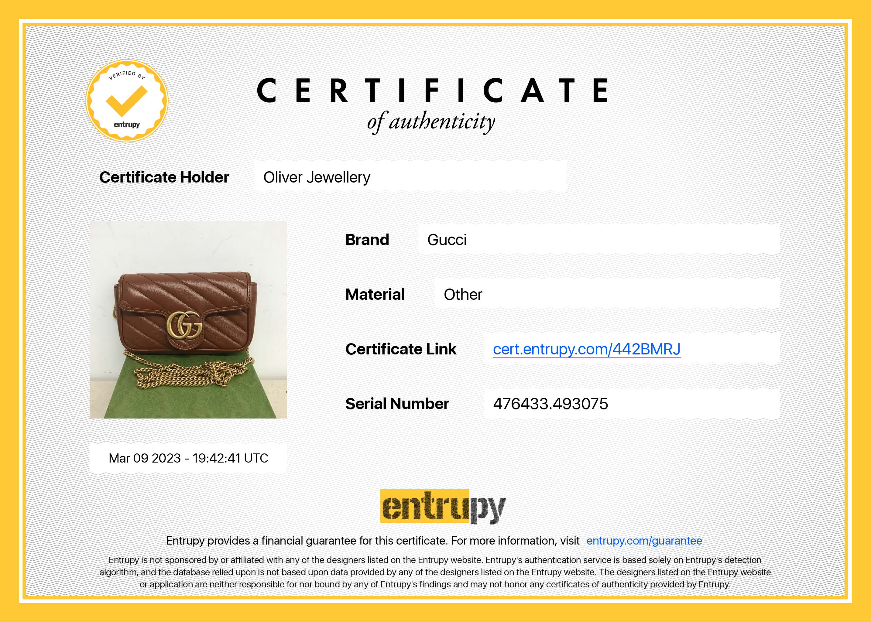 Included Items: Original Gucci Box, Dust Bag and Entrupy Certificate of Authenticity #: 442BMRJ
