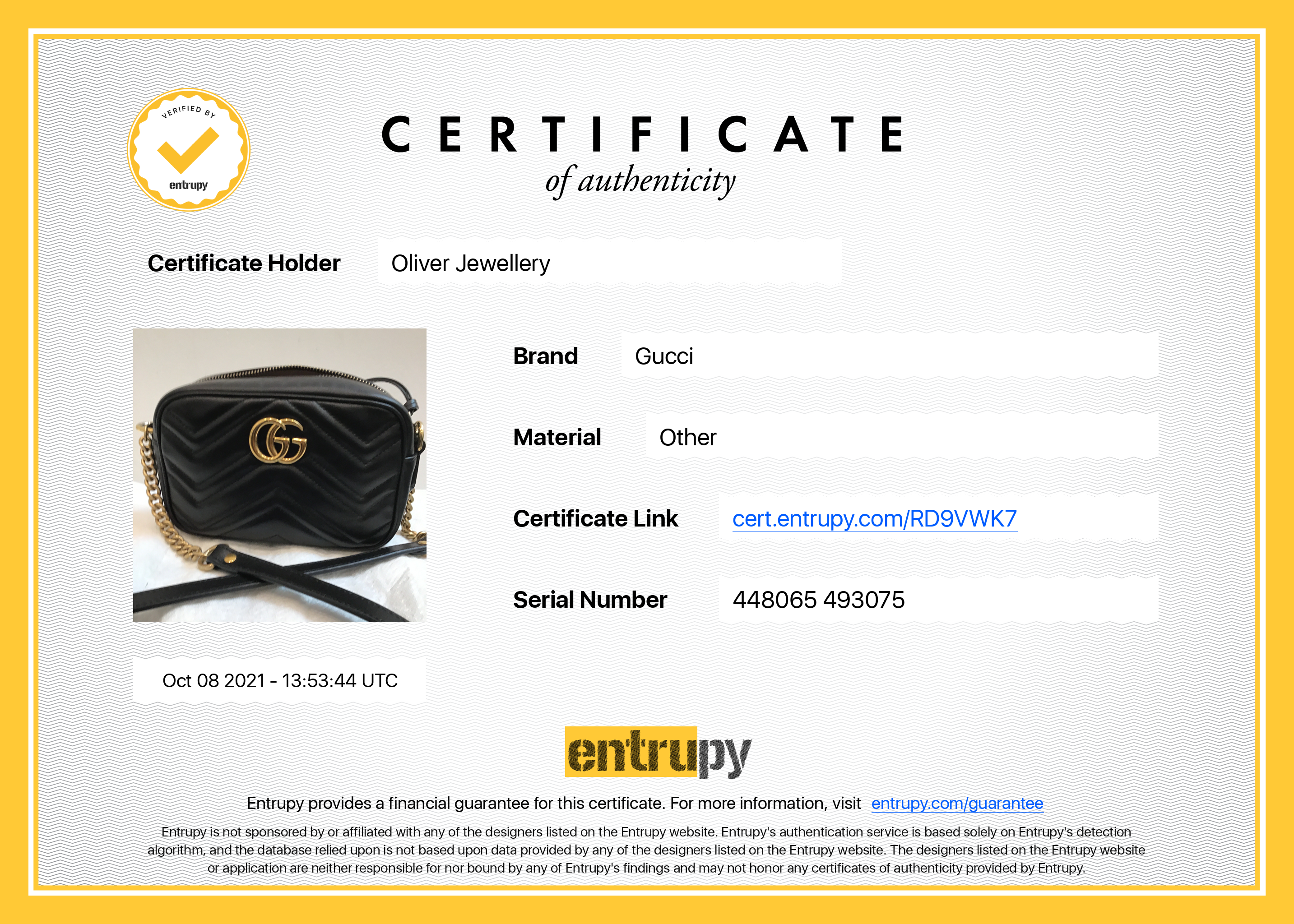 Included Items: Original Gucci Dust Bag & Entrupy Certificate of Authenticity #: RD9VWK7