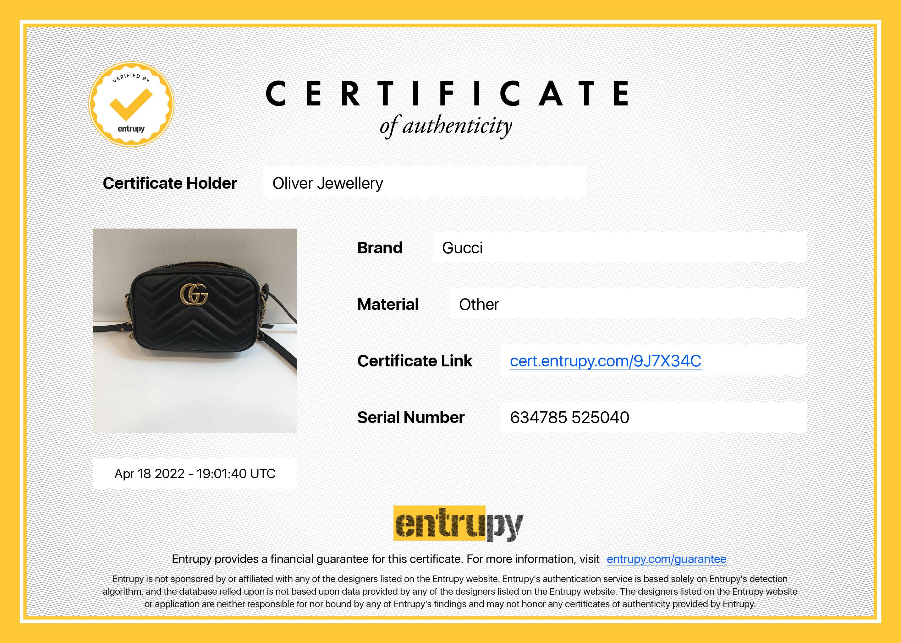 Included Items: Original Gucci Dust Bag & Entrupy Certificate of Authenticity #: 9J7X34C