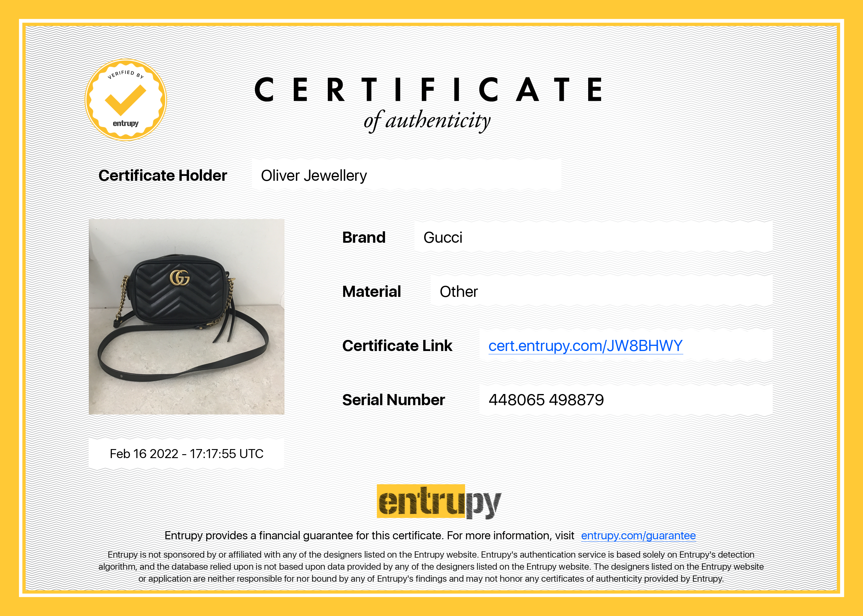 Included Items: Original Gucci Box, Dust Bag & Entrupy Certificate of Authenticity #: JW8BHWY