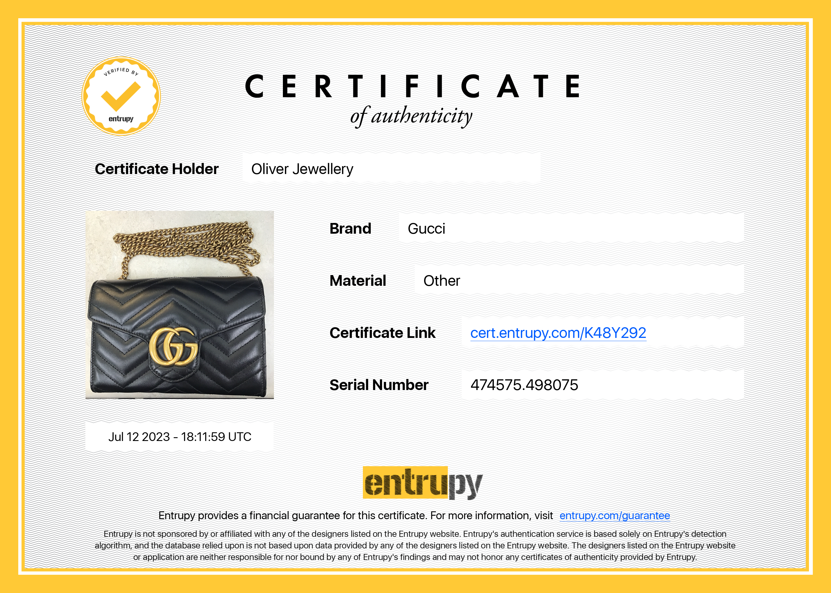 Included Items: Original Gucci Box, Dust Bag and Entrupy Certificate of Authenticity #: K48Y292