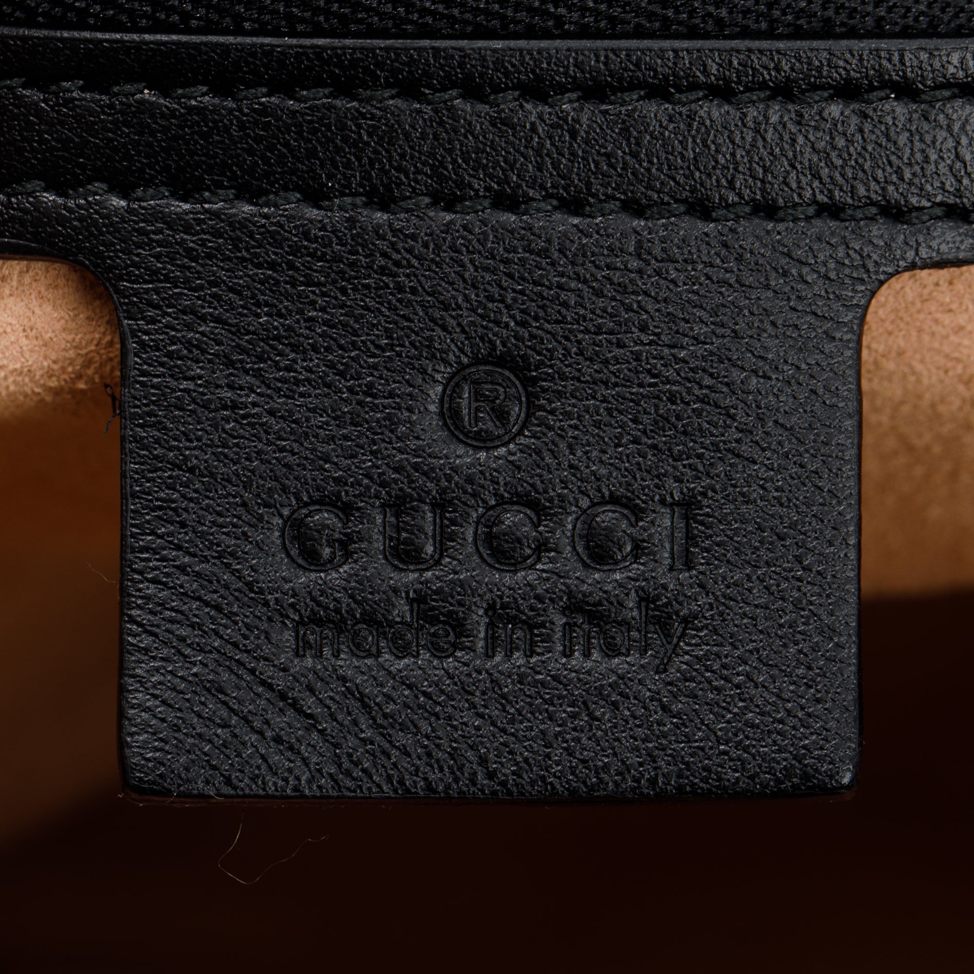 Condition: Very Good; slight tarnishing at hardware; slight creasing at exterior leather; clean interior