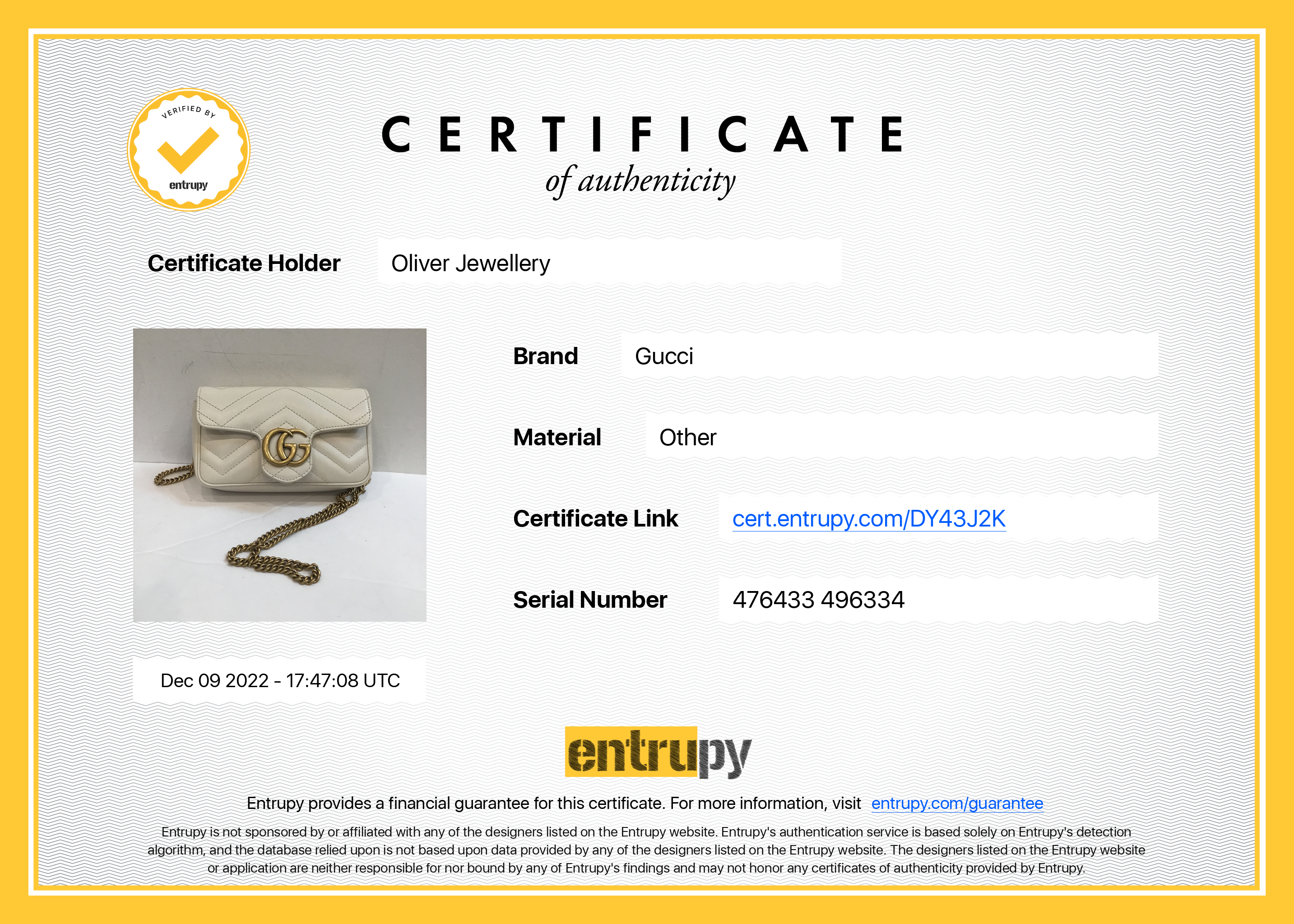 Included Items: Original Gucci Box, Booklet, Dust Bag and Entrupy Certificate of Authenticity #: DY43J2K