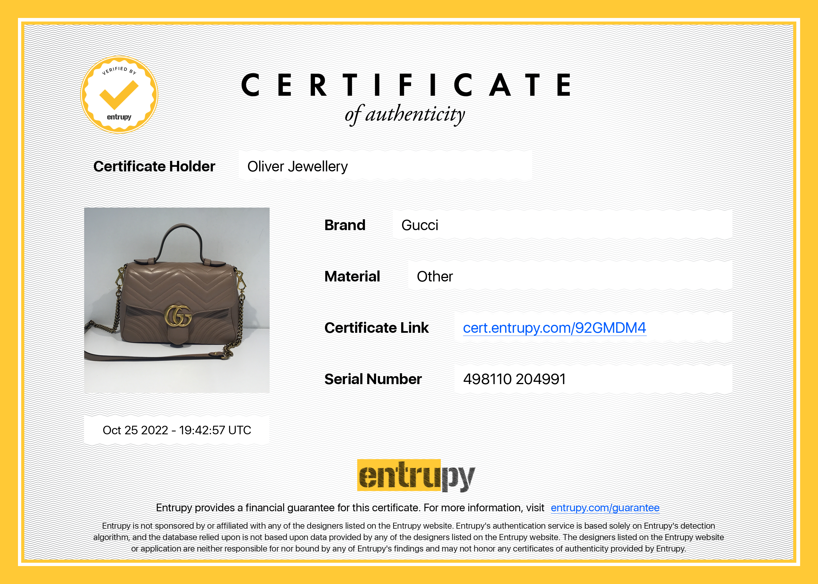 Included Items: Original Gucci Dust Bag, Booklet and Entrupy Certificate of Authenticity #: 92GMDM4