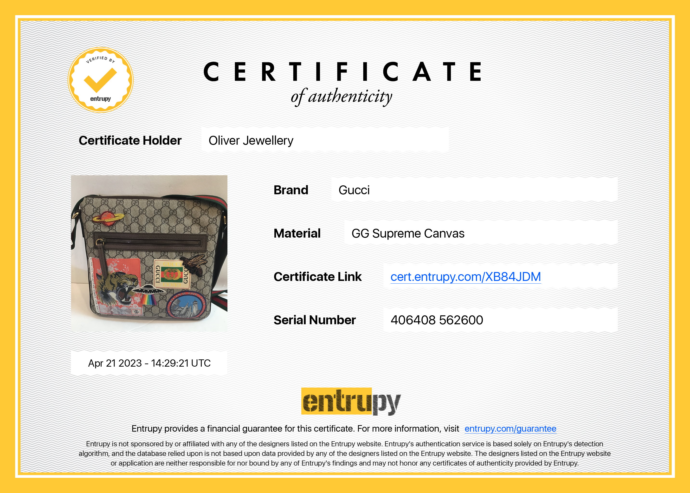 Included Items: Original Gucci Dust Bag, Booklet and Entrupy Certificate of Authenticity #: XB84JDM