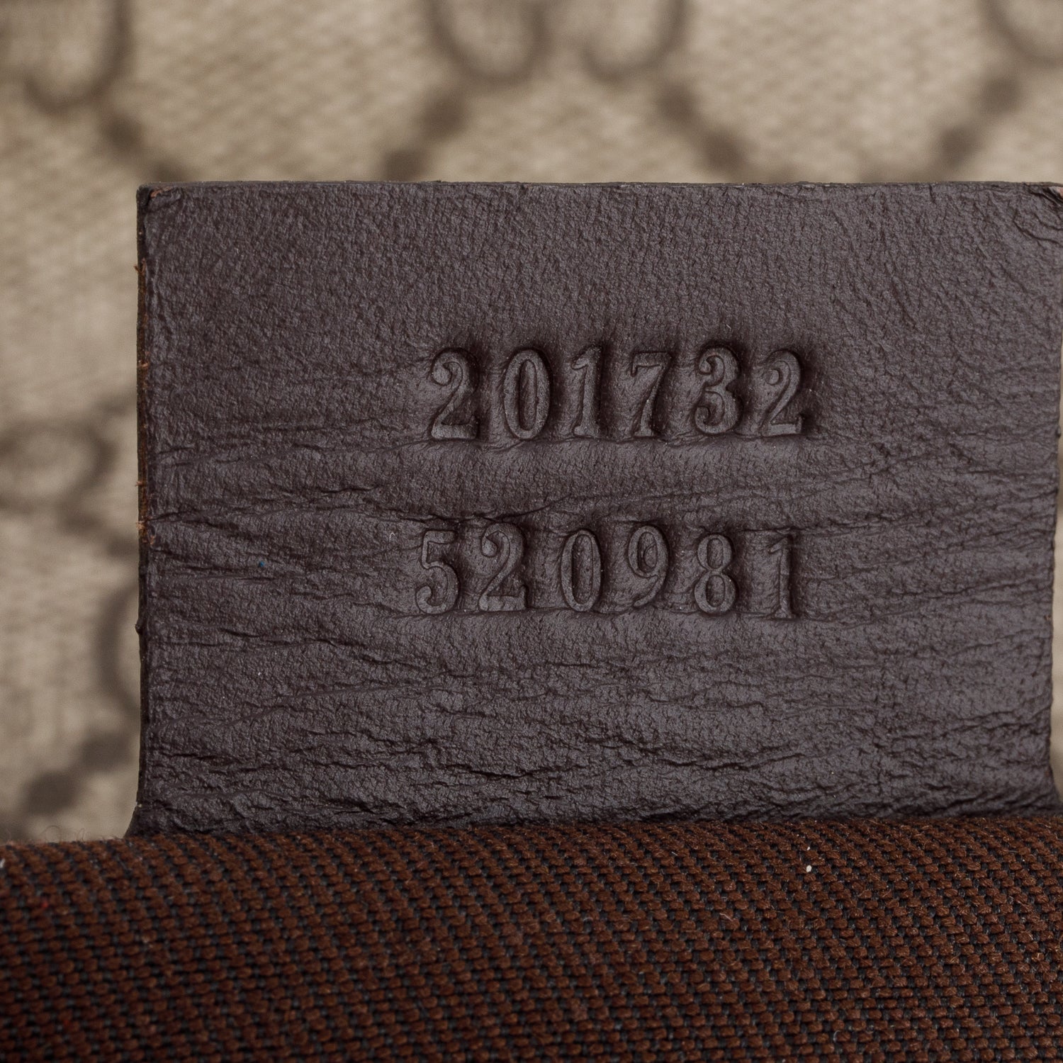 Condition: Very Good; slight scratching at hardware; minor scuffing at exterior leather trim edges; clean interior.
