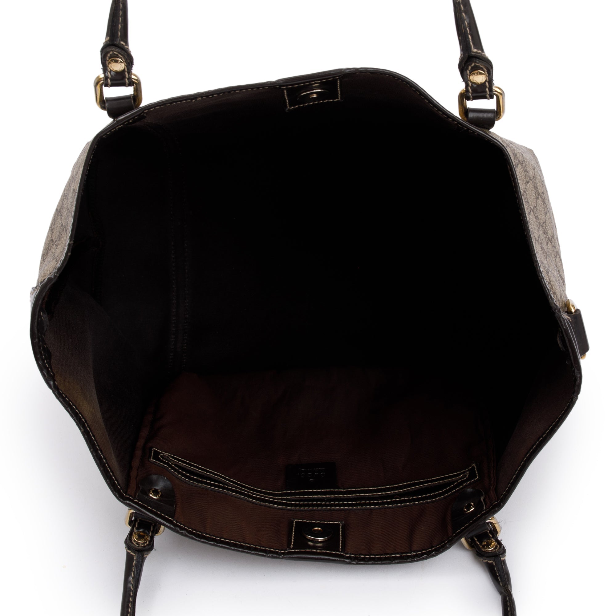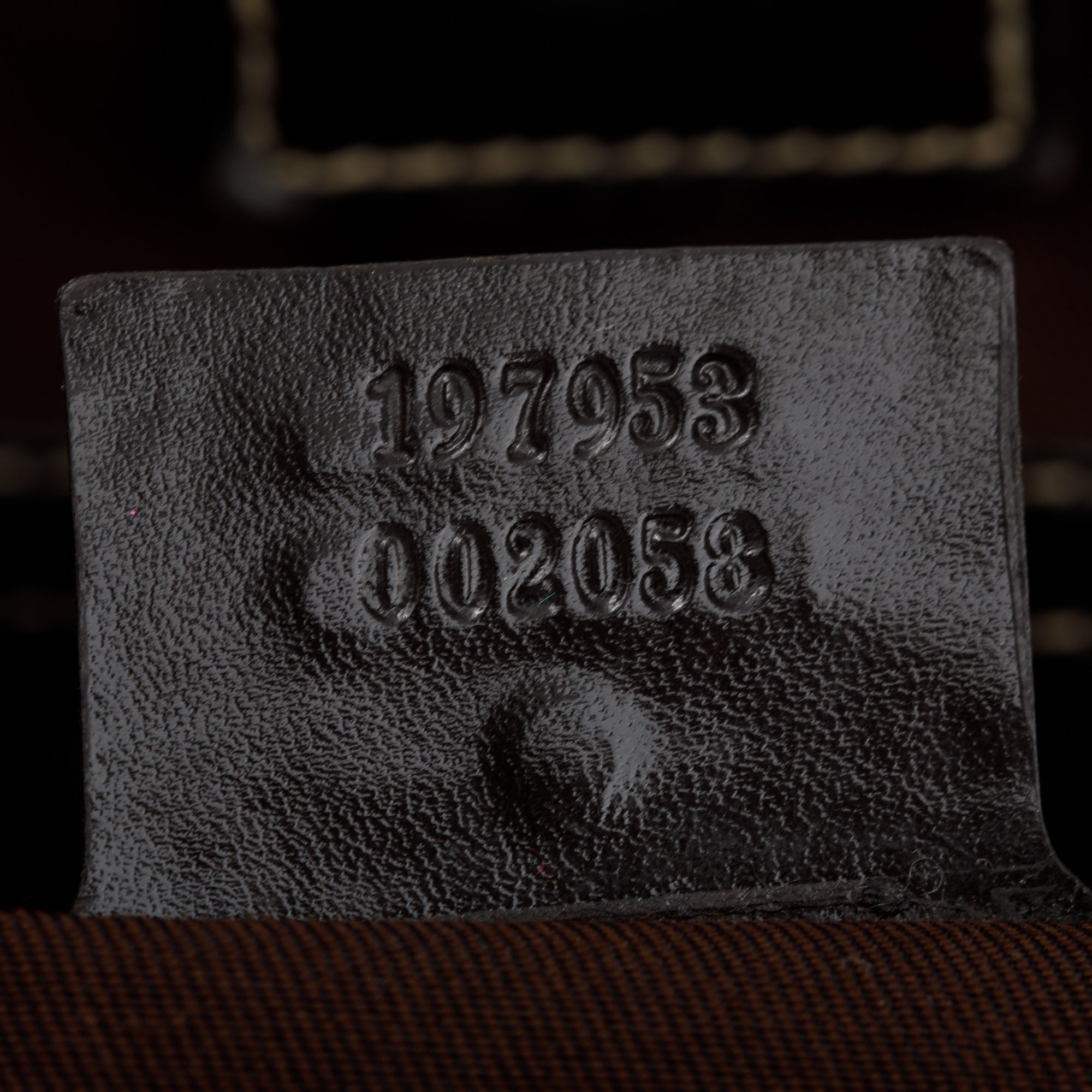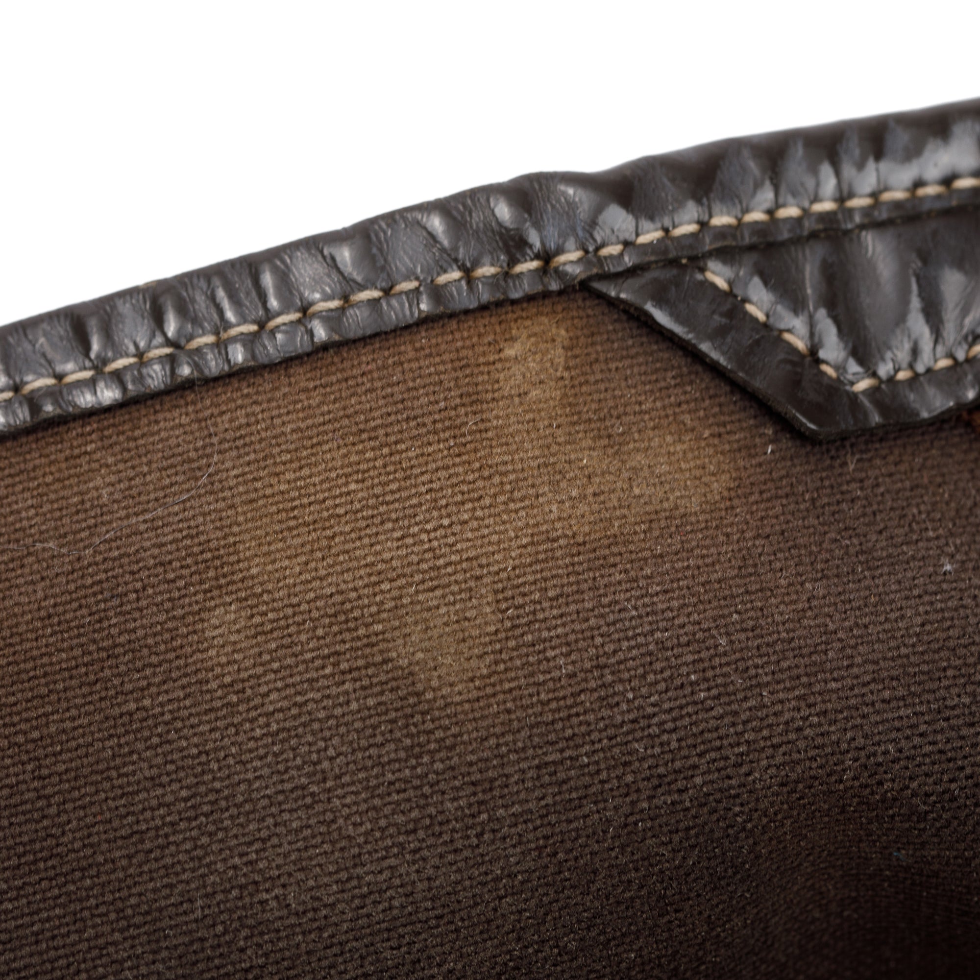 Condition: Good; some scratches and tarnishing at hardware; slight wear at straps; slight scuffing at exterior leather trim and corners; slight marks at interior