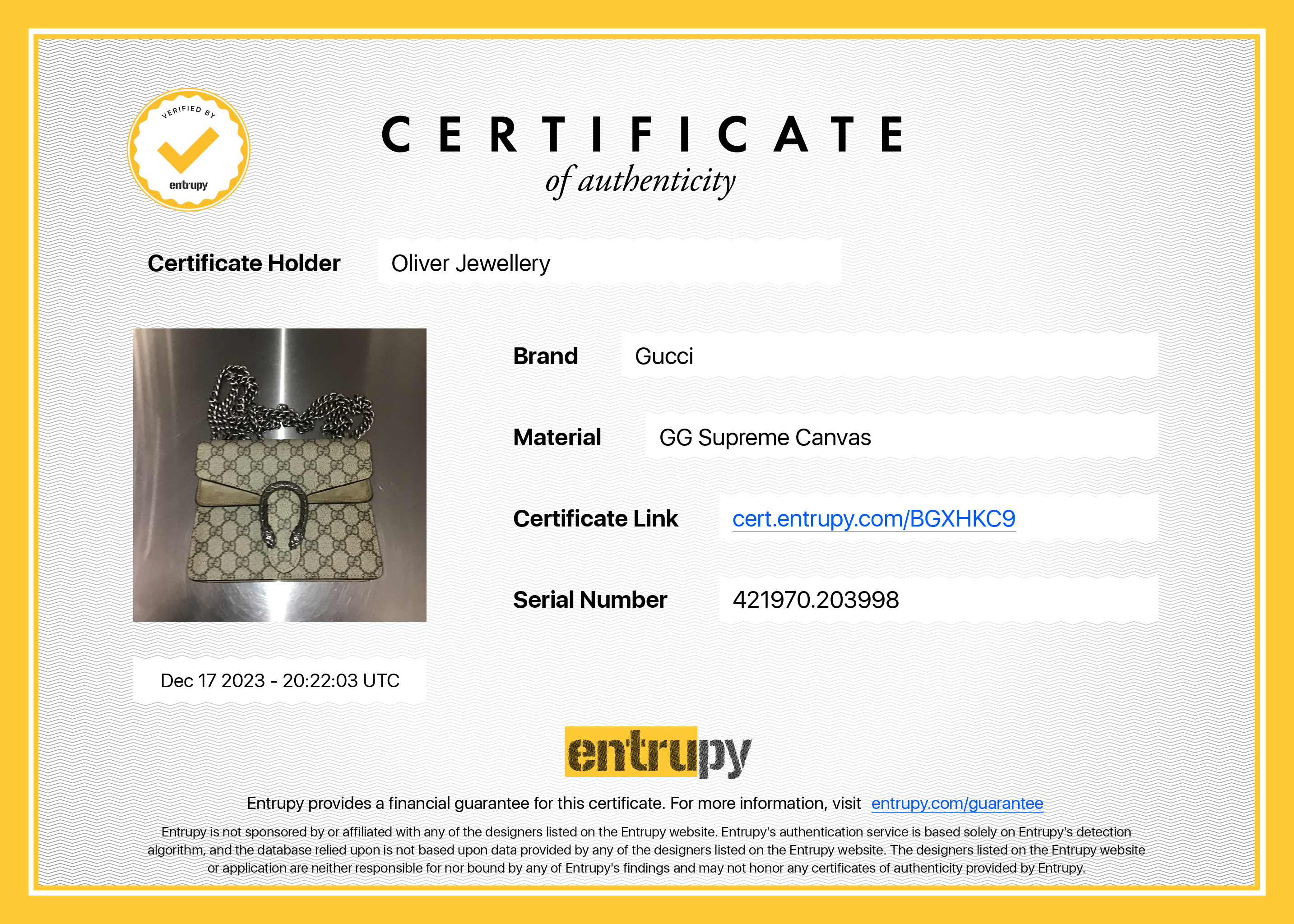 Box, Dust Bag, Booklet, Entrupy Certificate of Authenticity