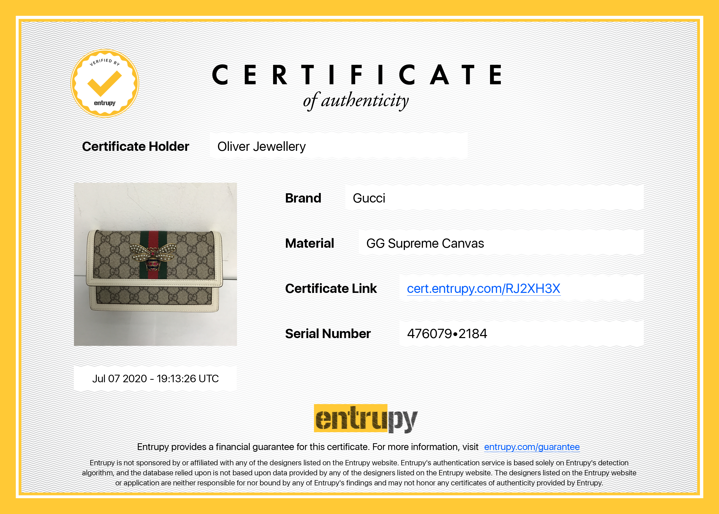Included Items: Original Gucci Box, Dust Bag, Booklet & Entrupy Certificate of Authenticity #RJ2XH3X