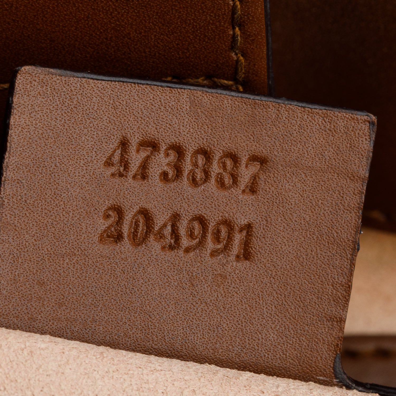 Condition: Very Good; slight scuffing at exterior leather bottom corners; light marks at interior