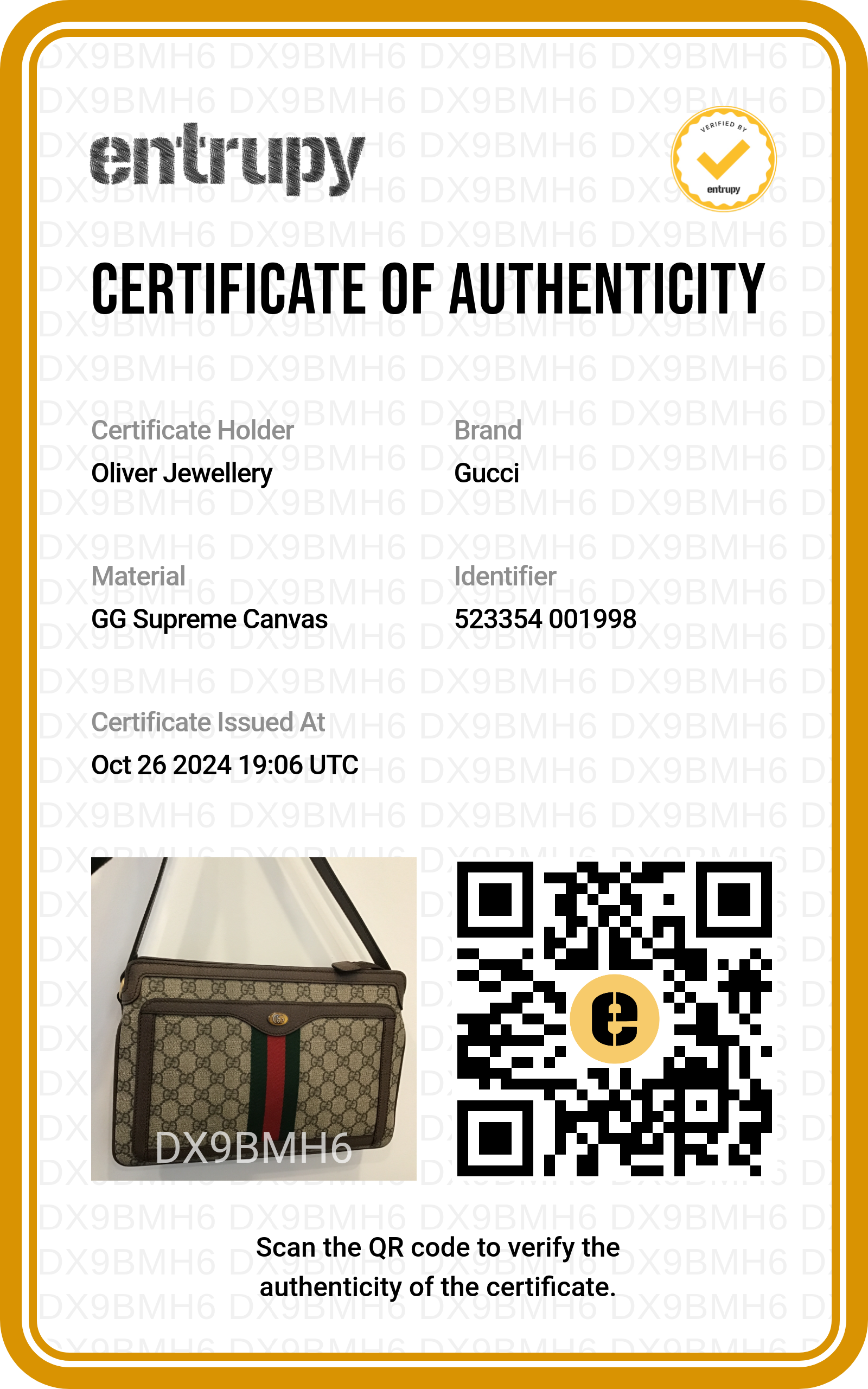 Entrupy Certificate of Authenticity
