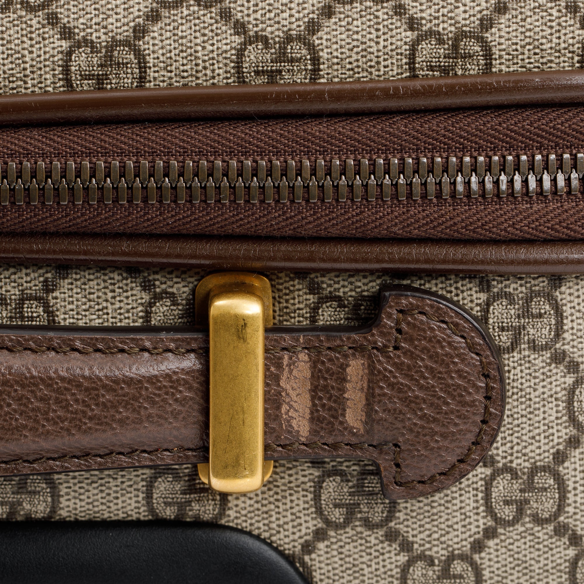 Condition: Very Good; slight marks at leather trim; slight scuffing at exterior base and wheels; clean interior