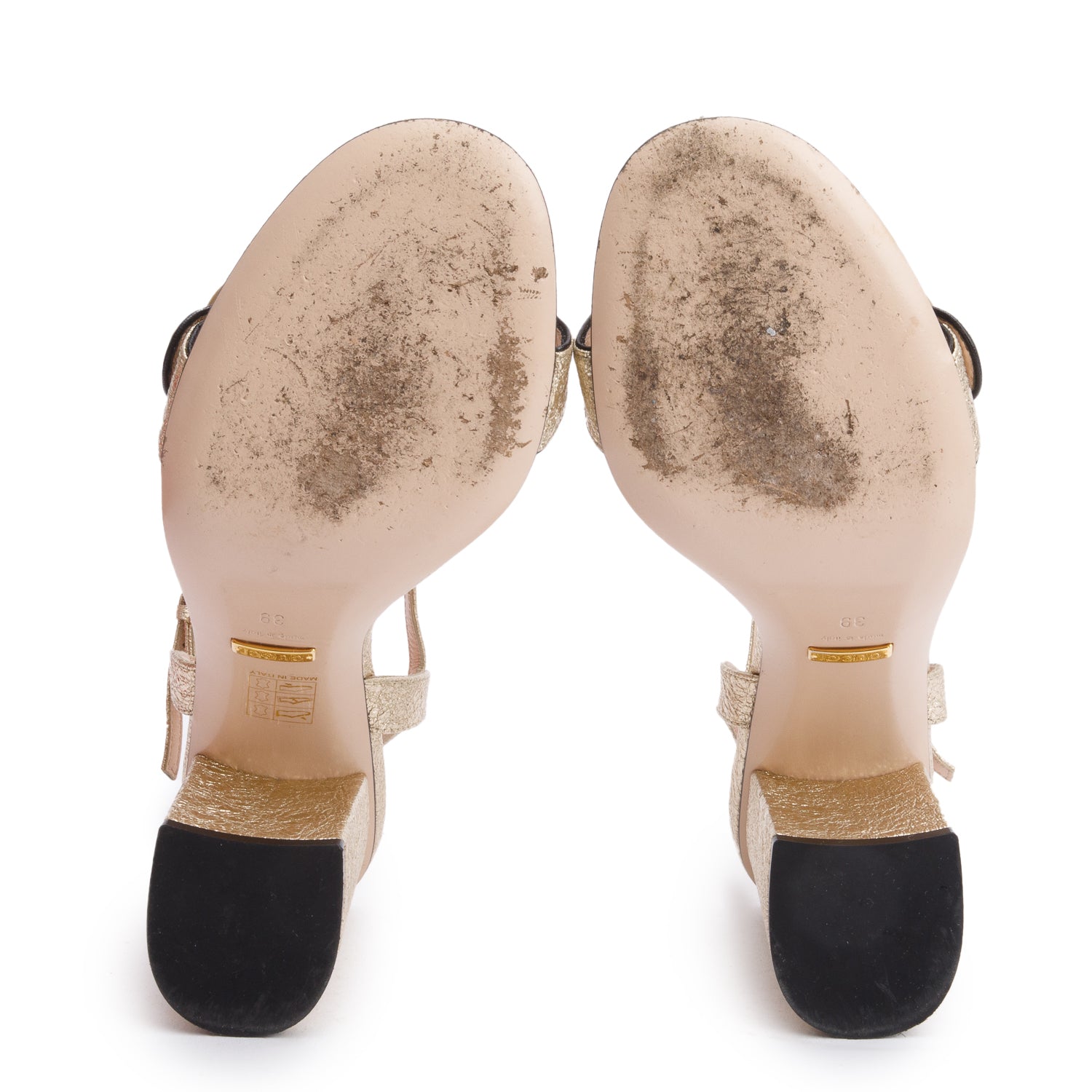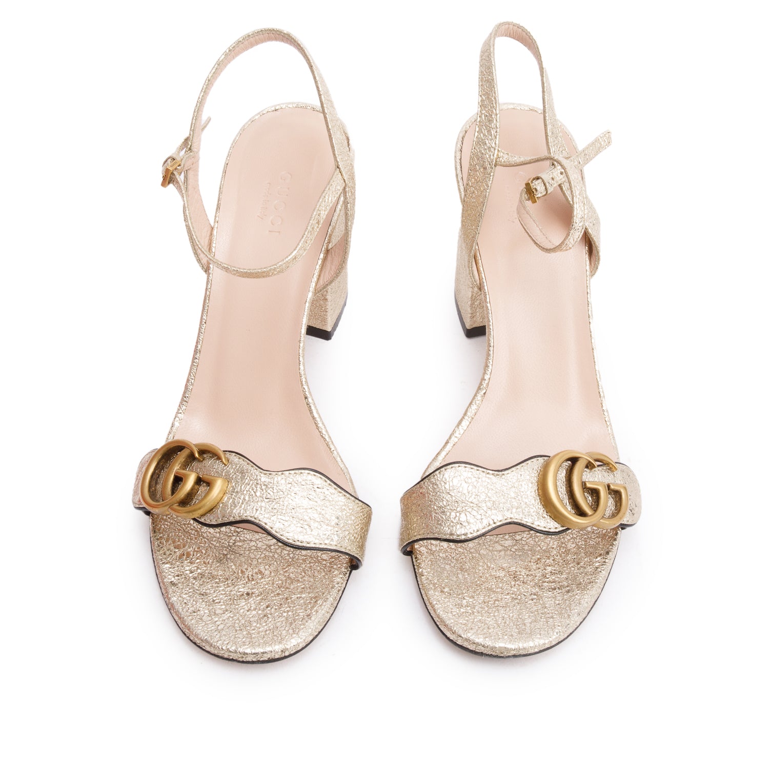 Gold Metallic Galassia GG Marmont Slingback Sandals, Size 39 w/ Box