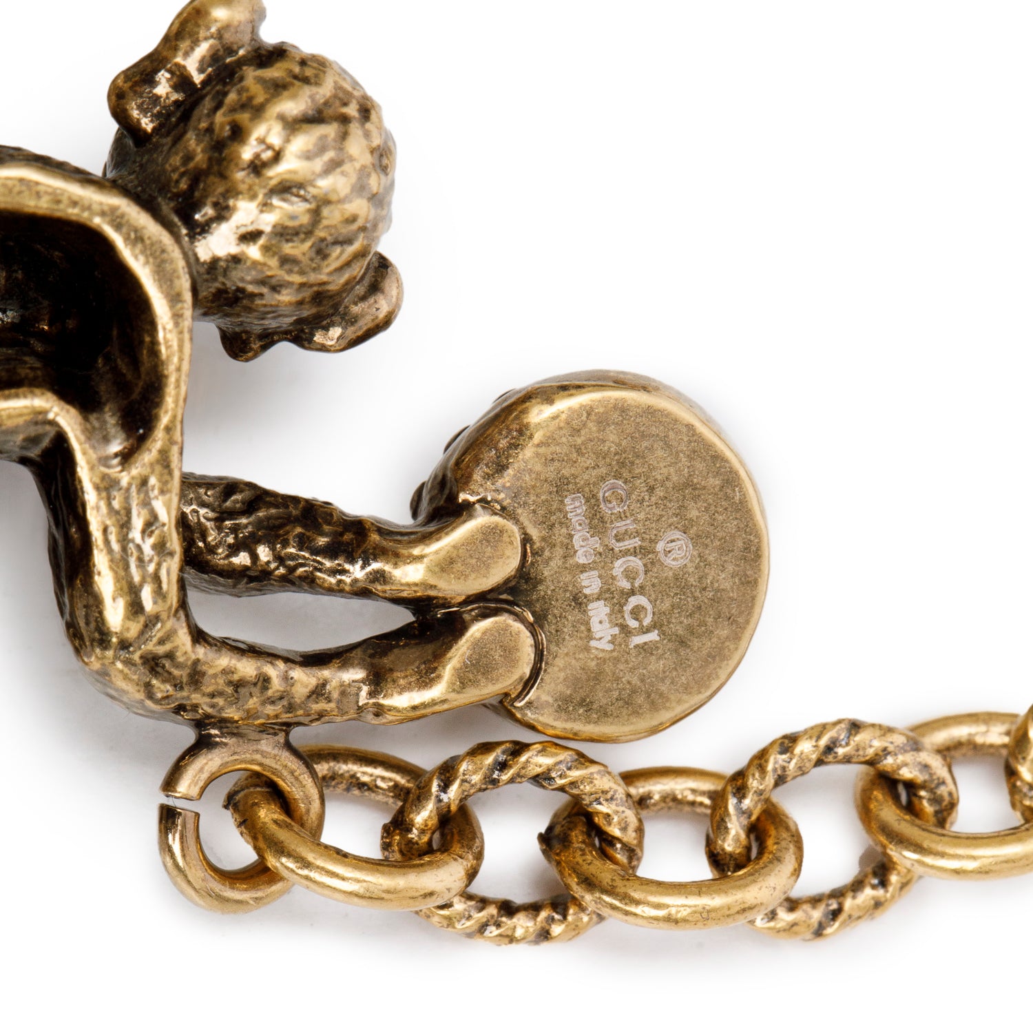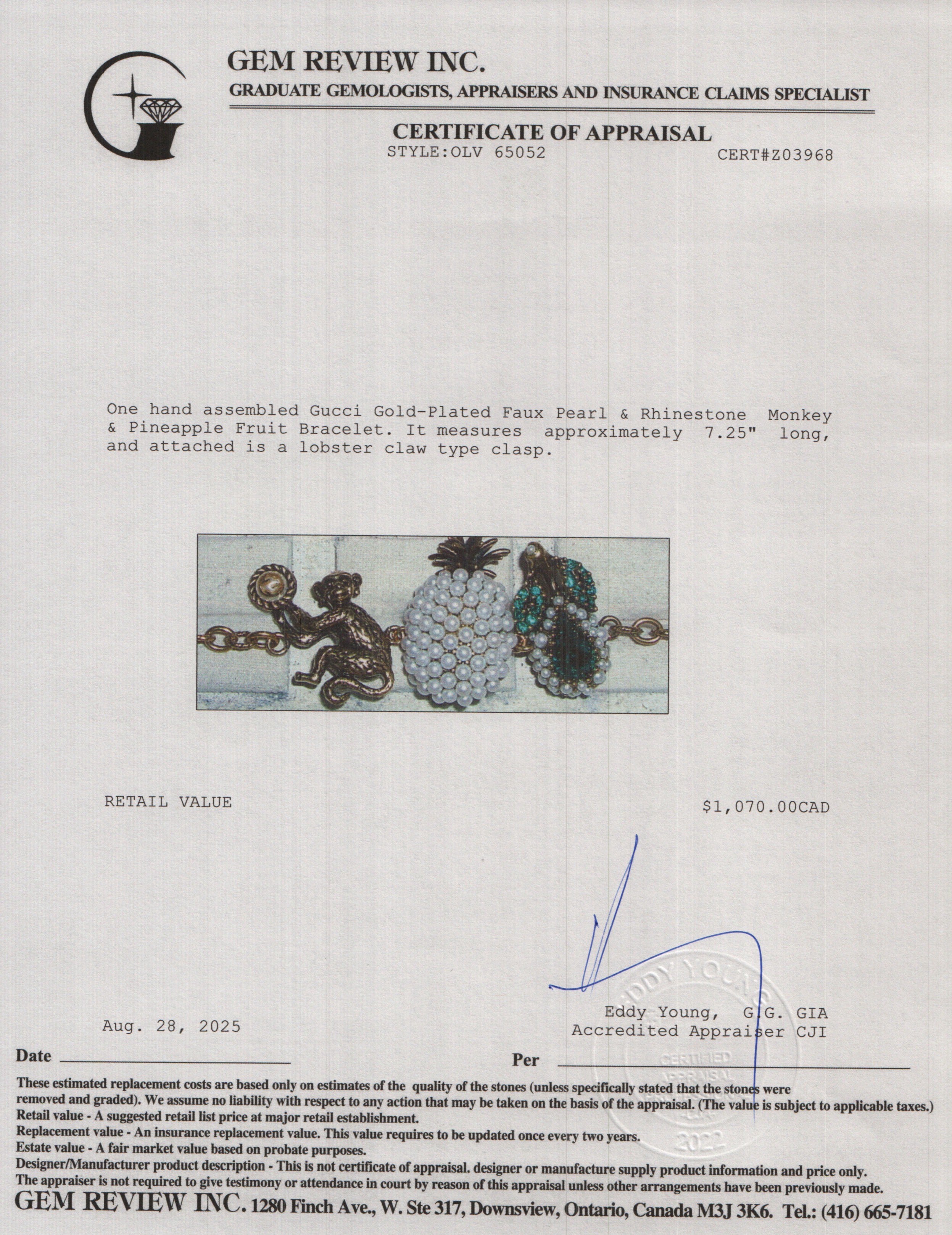 Gold-Plated Faux Pearl & Rhinestone Monkey & Pineapple Fruit Bracelet w/ Box