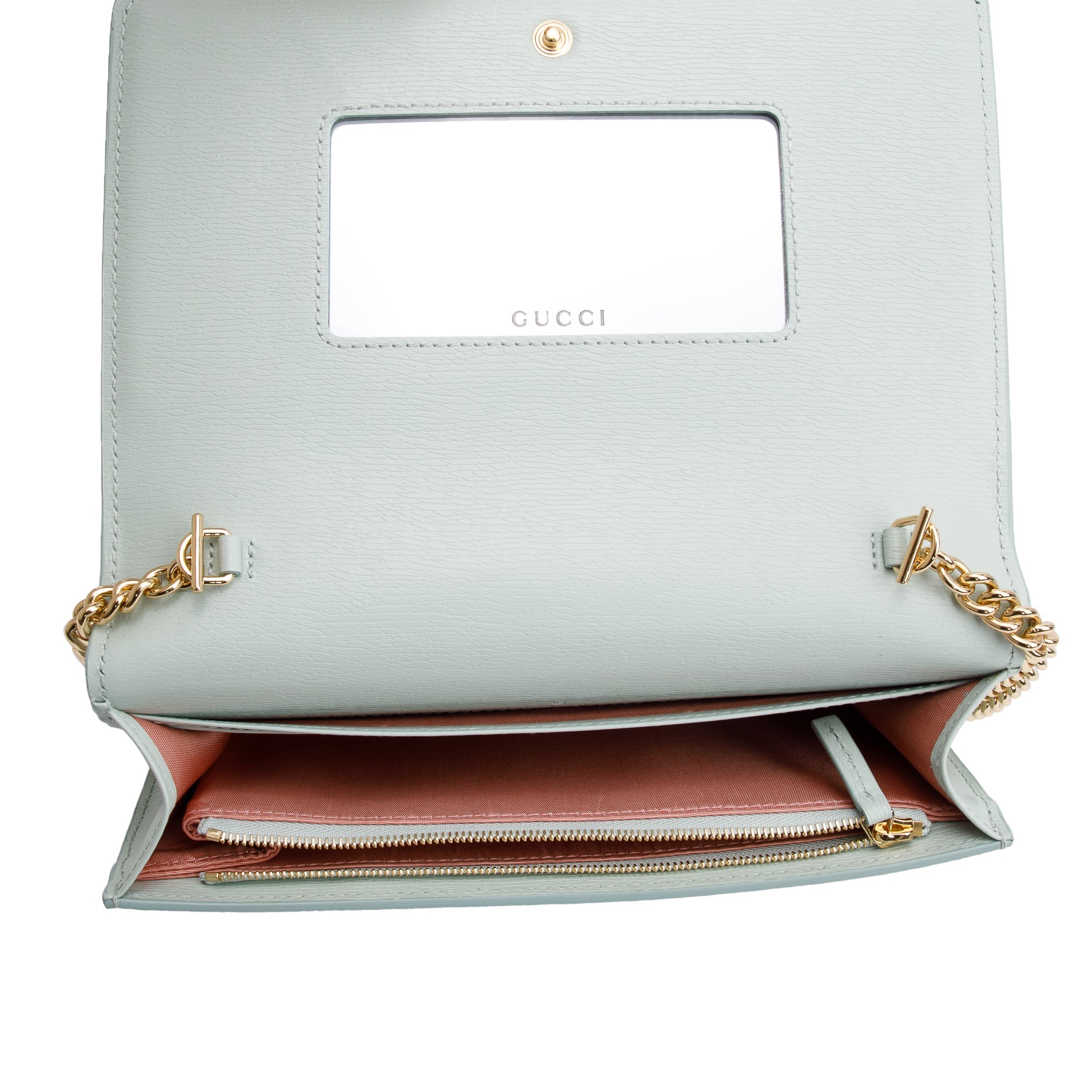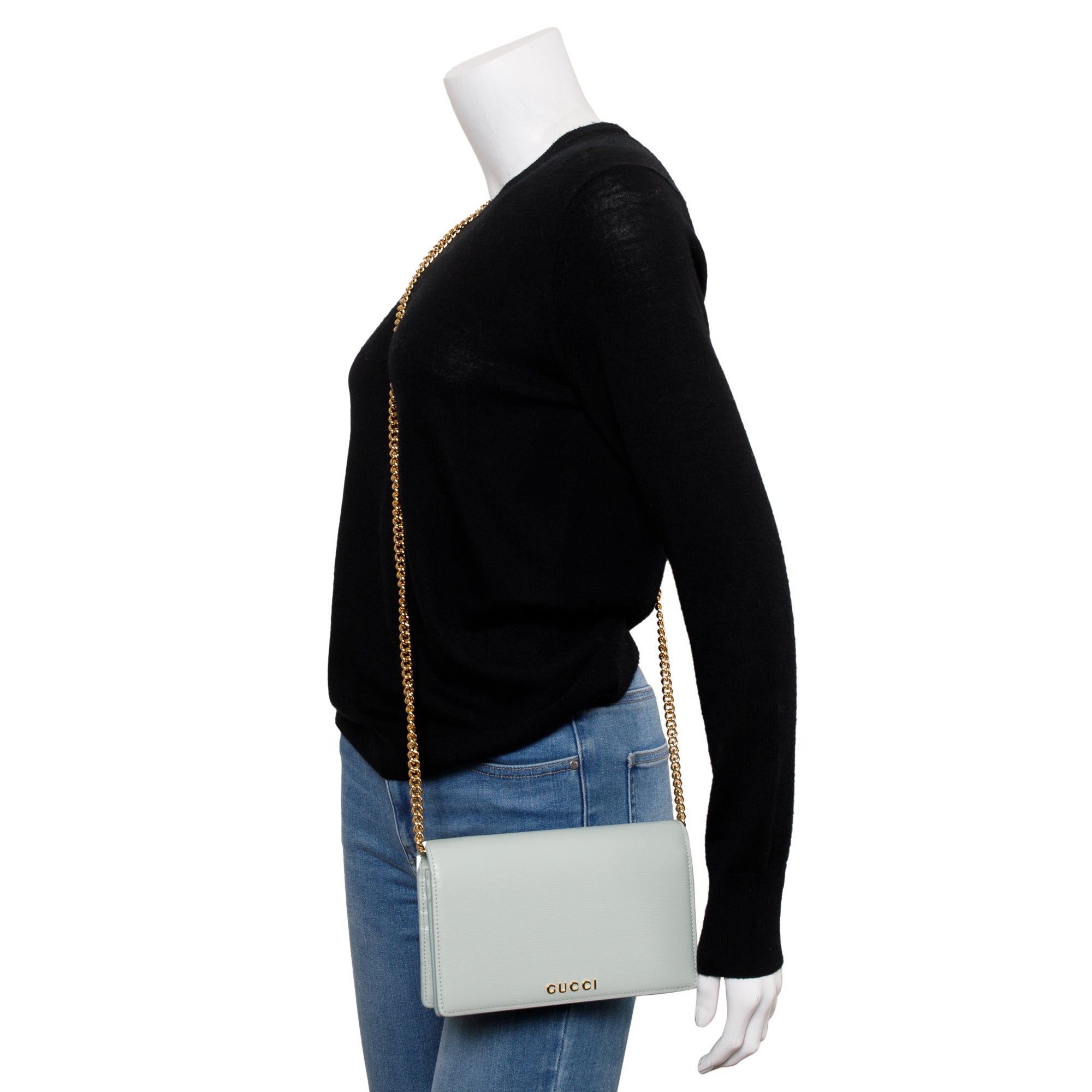Green Calfskin Leather Chain Wallet with Script w/ Box