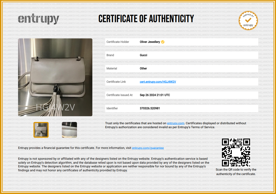 Dust Bag, Receipt, Entrupy Certificate of Authenticity