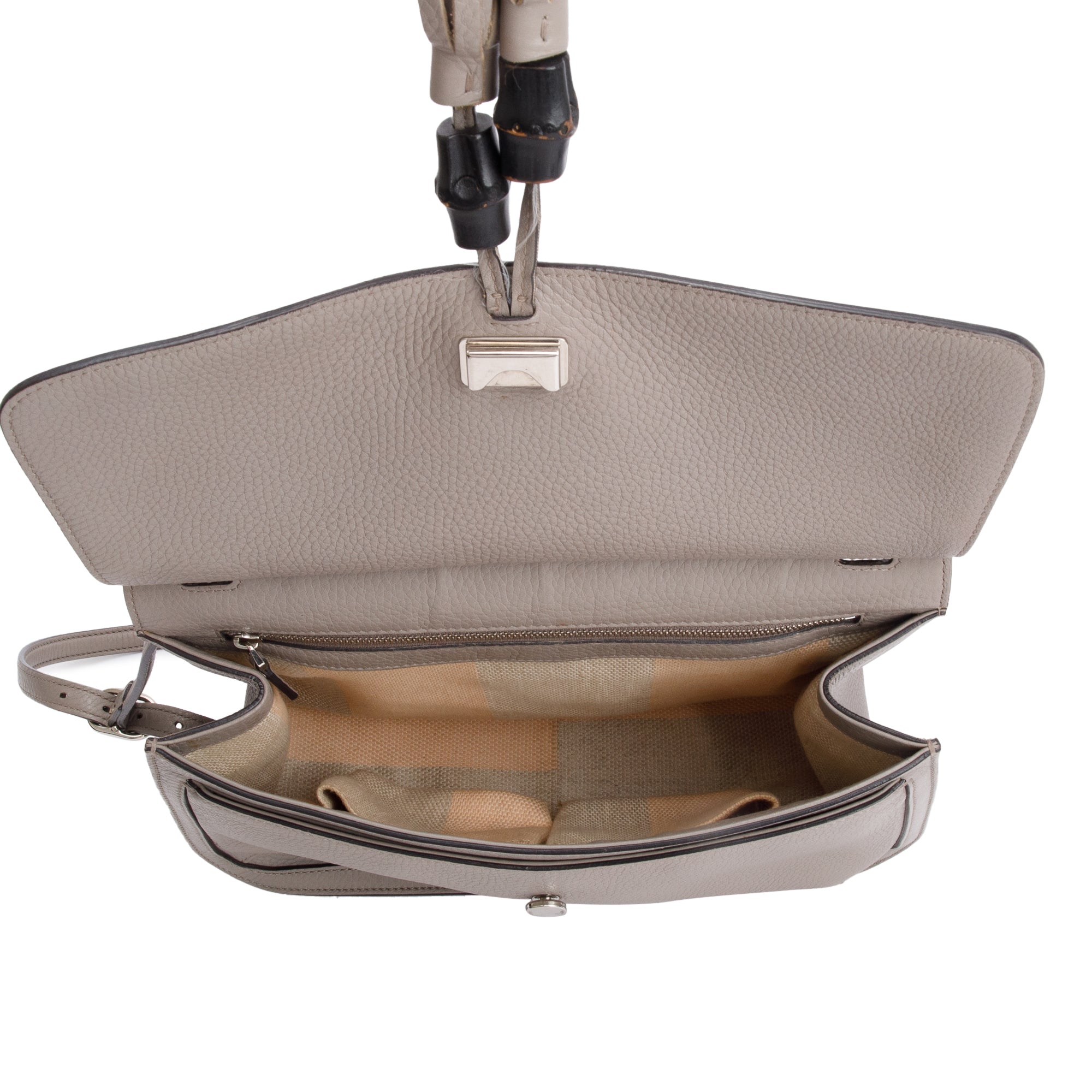 Grey Calfskin Leather Medium Bamboo Daily Crossbody Bag w/ Receipt