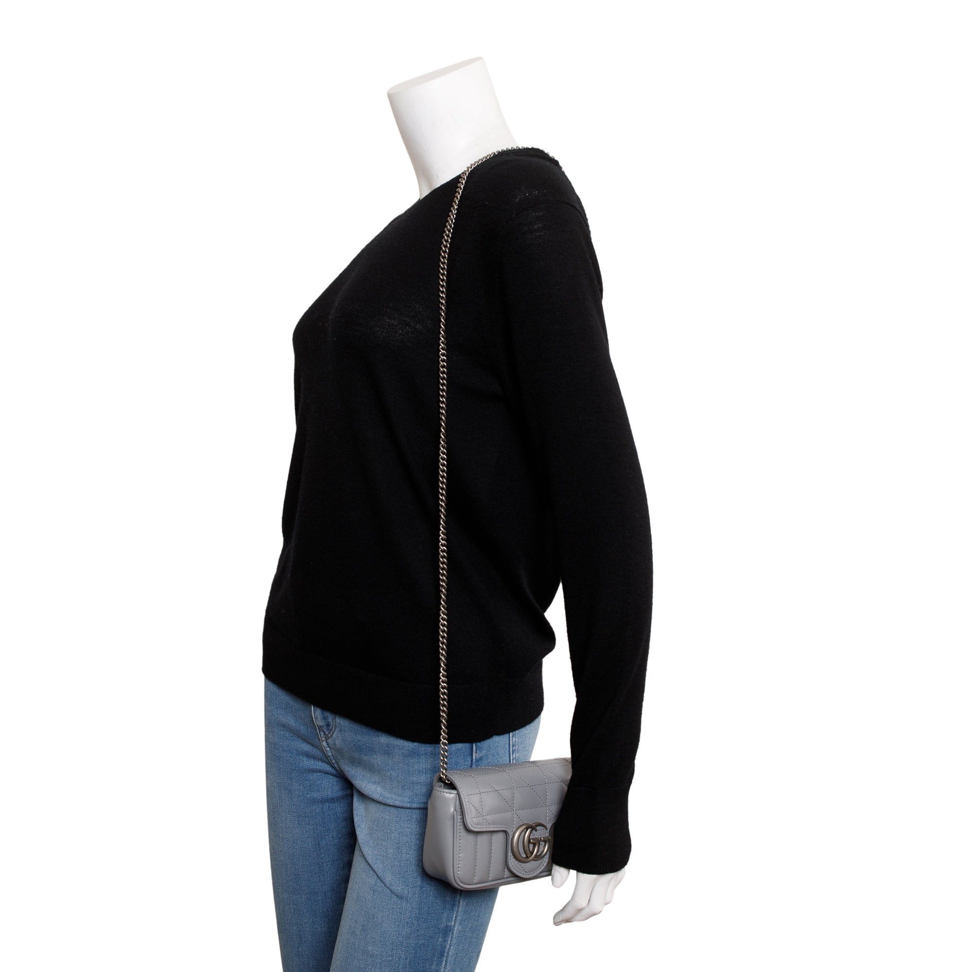 Grey GG Marmont Matelasse Leather Super Mini Bag w/ Box