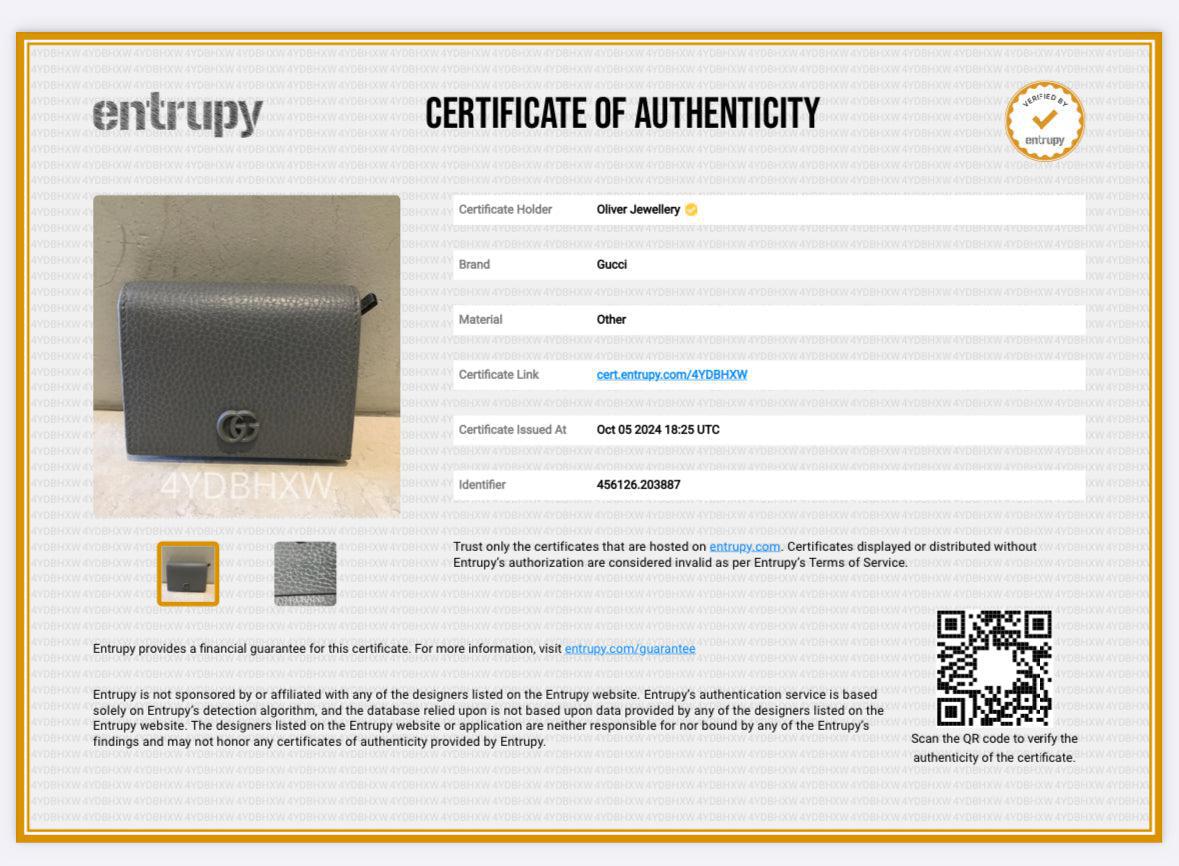 Box, Dustbag, Tag, Entrupy Certificate of Authenticity