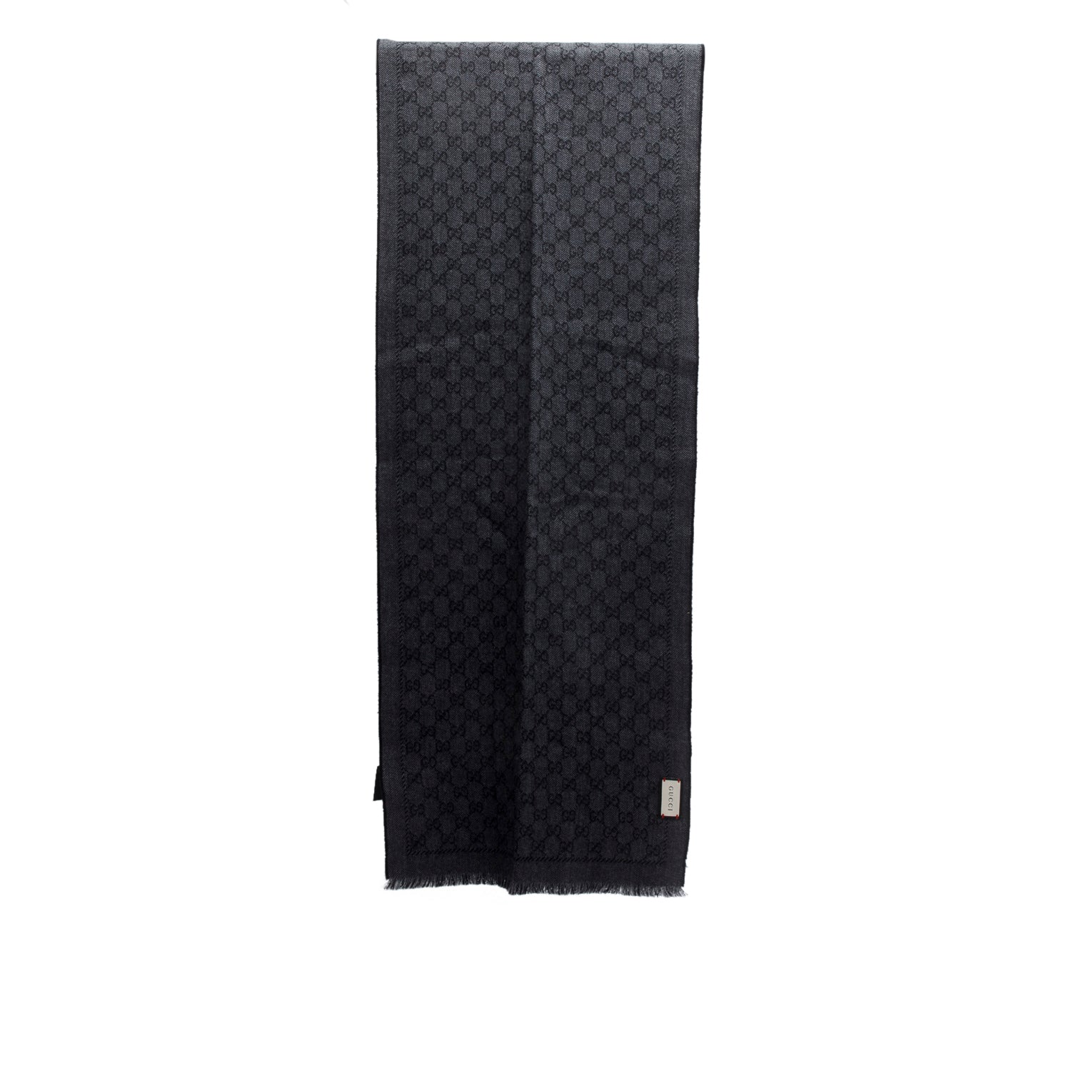 Grey Wool GG Jacquard Monogram Fringe Scarf w/ Box & Receipt