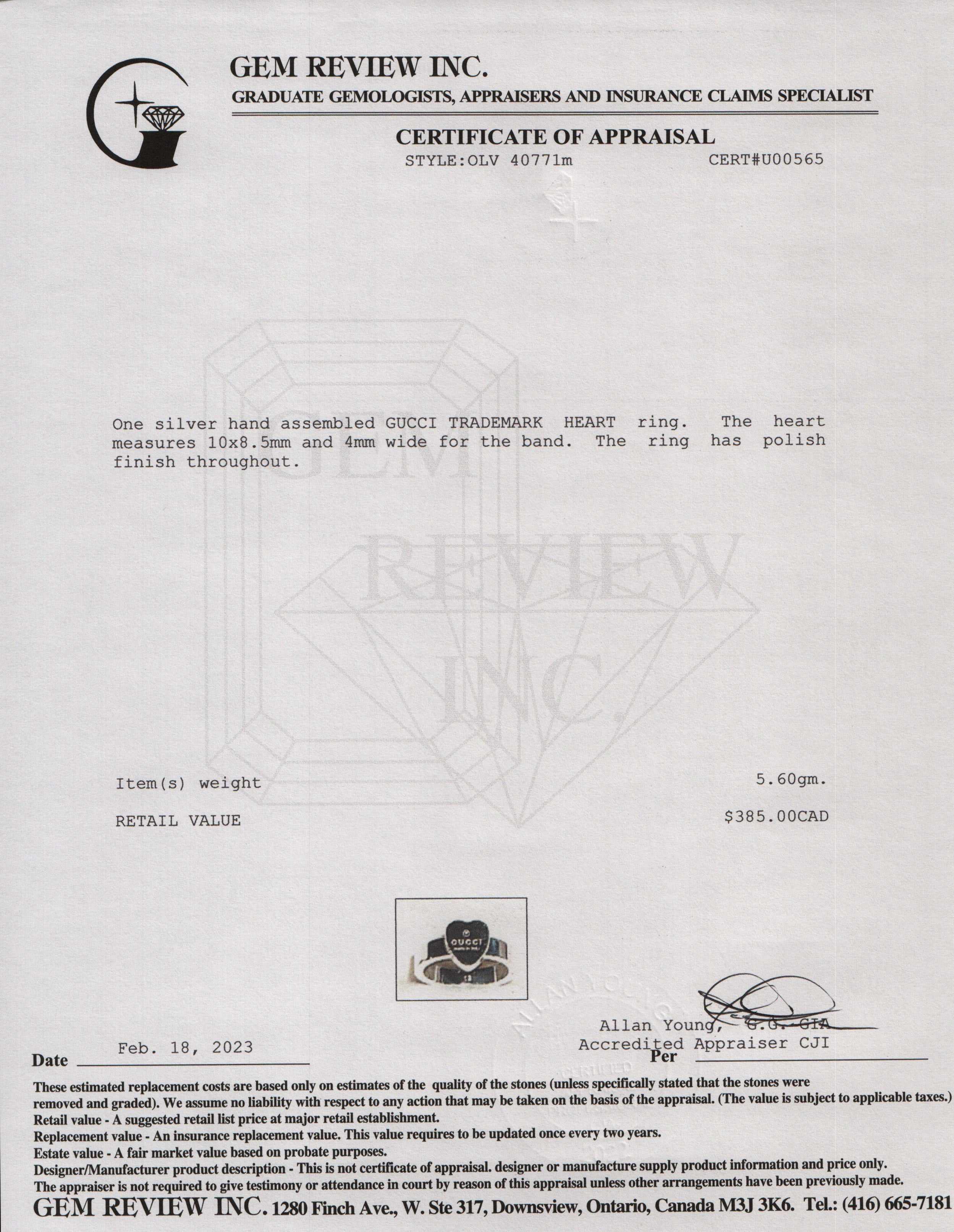 Gucci Heart Ring with Gucci Trademark
