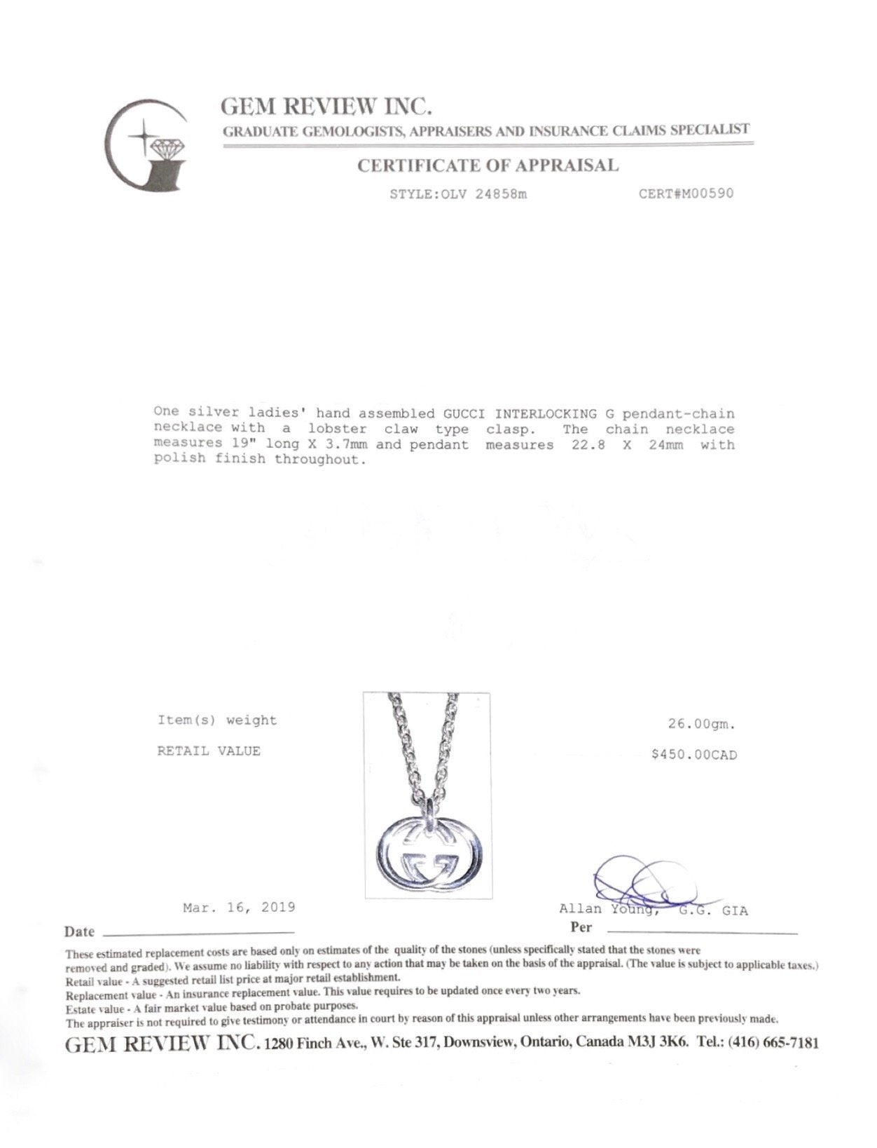- Signature/Hallmarks: Gucci Made in Italy AG925