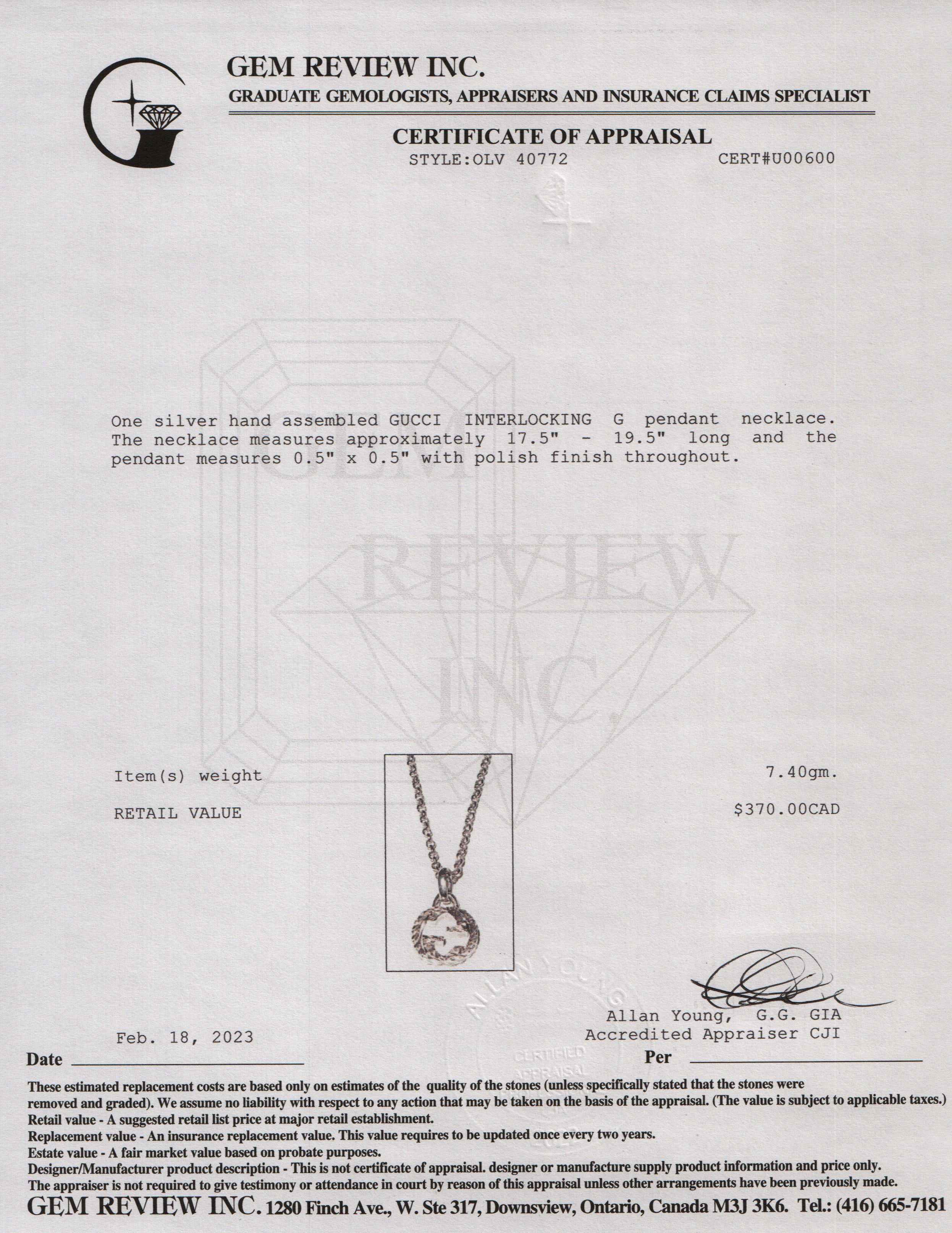 Included Items: Original Gucci Pouch & Gem Review Appraisal