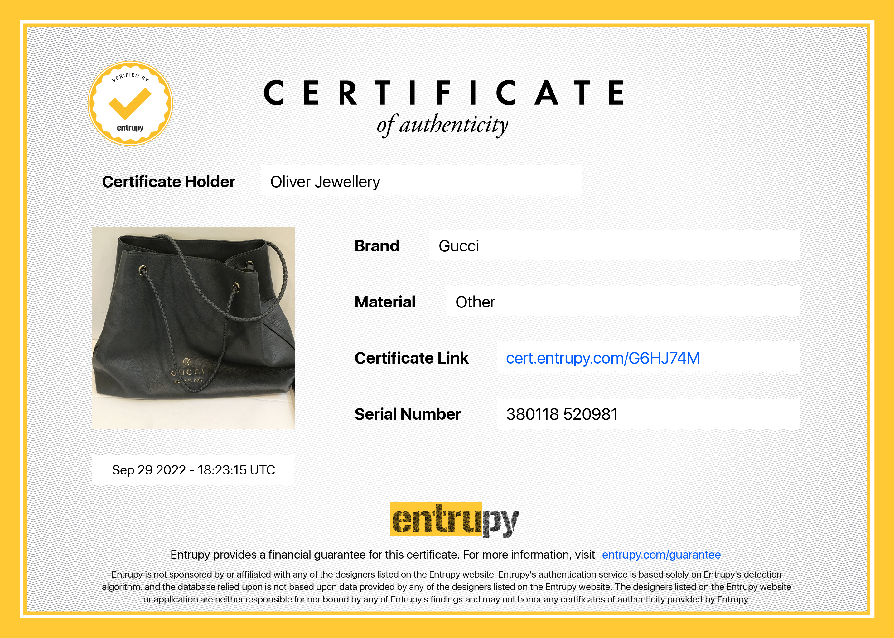Included Items: Entrupy Certificate of Authenticity #: G6HJ74M