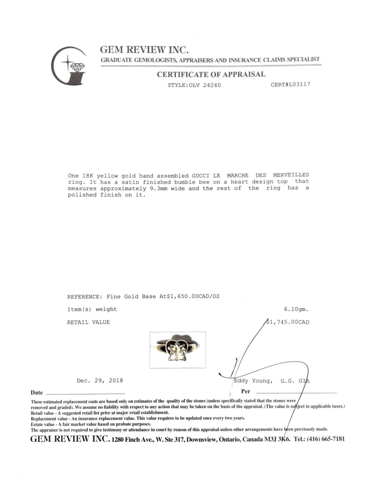 • Signature/Hallmarks: Gucci Made in Italy, Au750, Registered Trademark Number, Brand Hallmark, Gucci Size