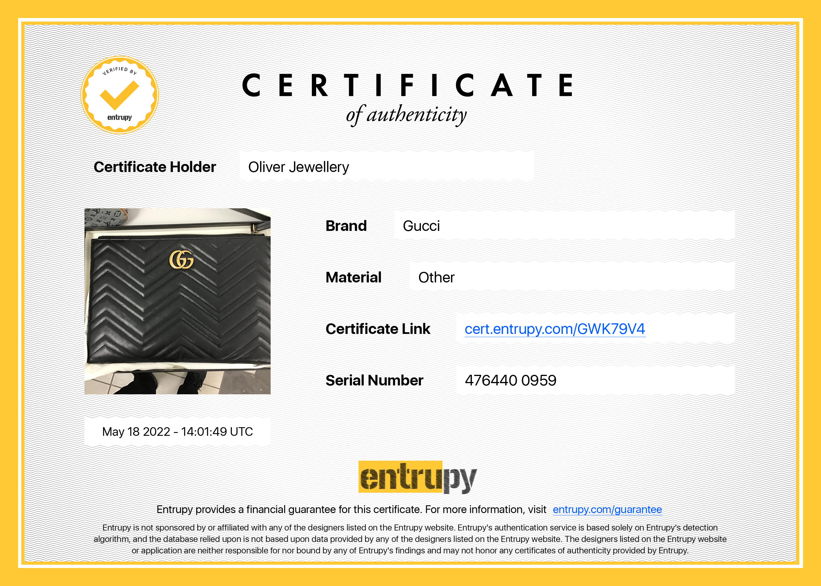 Included Items: Original Gucci Box, Dust Bag and Entrupy Certificate of Authenticity #: GWK79V4