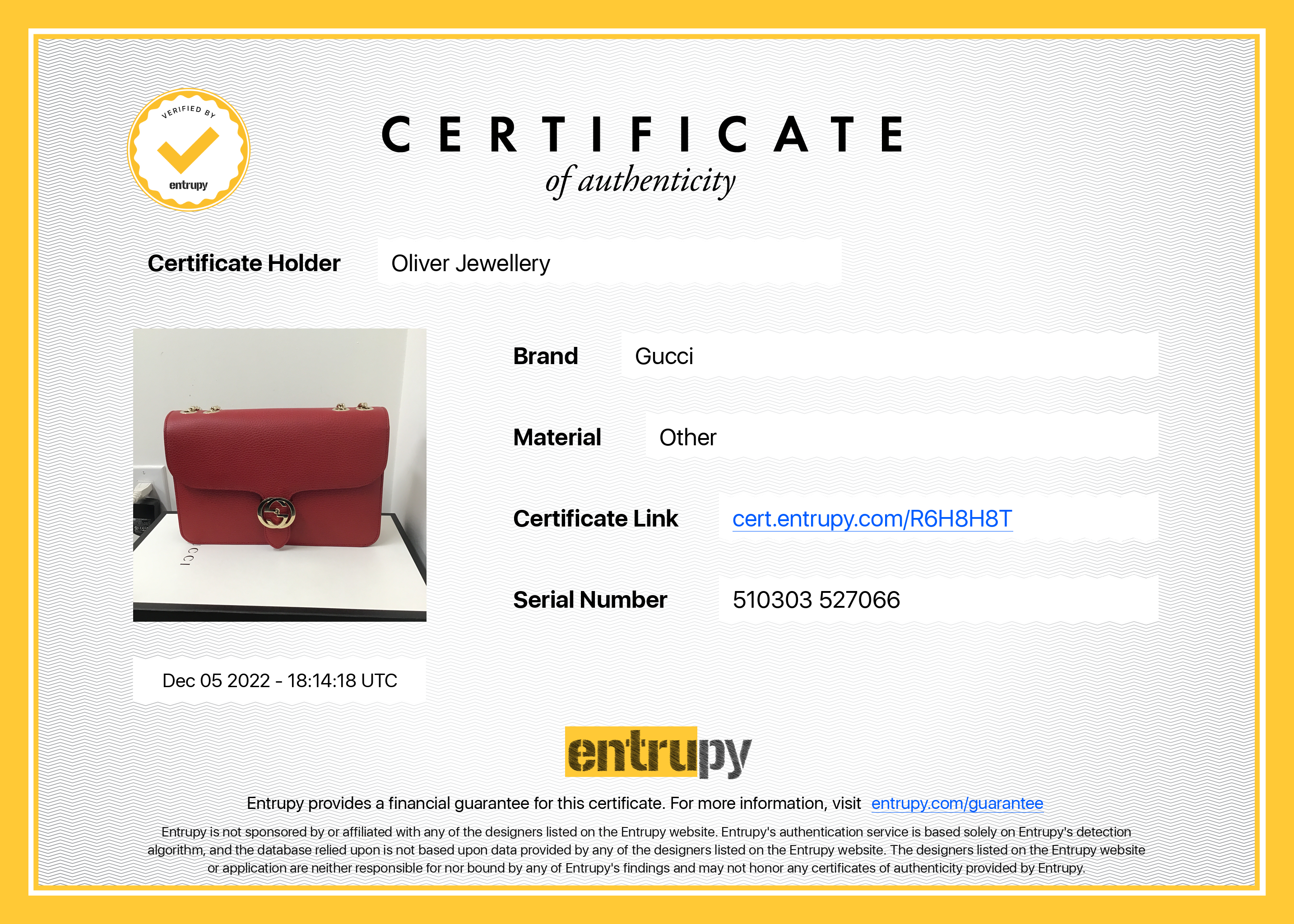 Included Items: Original Gucci Box, Dust Bag, Booklet & Entrupy Certificate of Authenticity #: R6H8H8T
