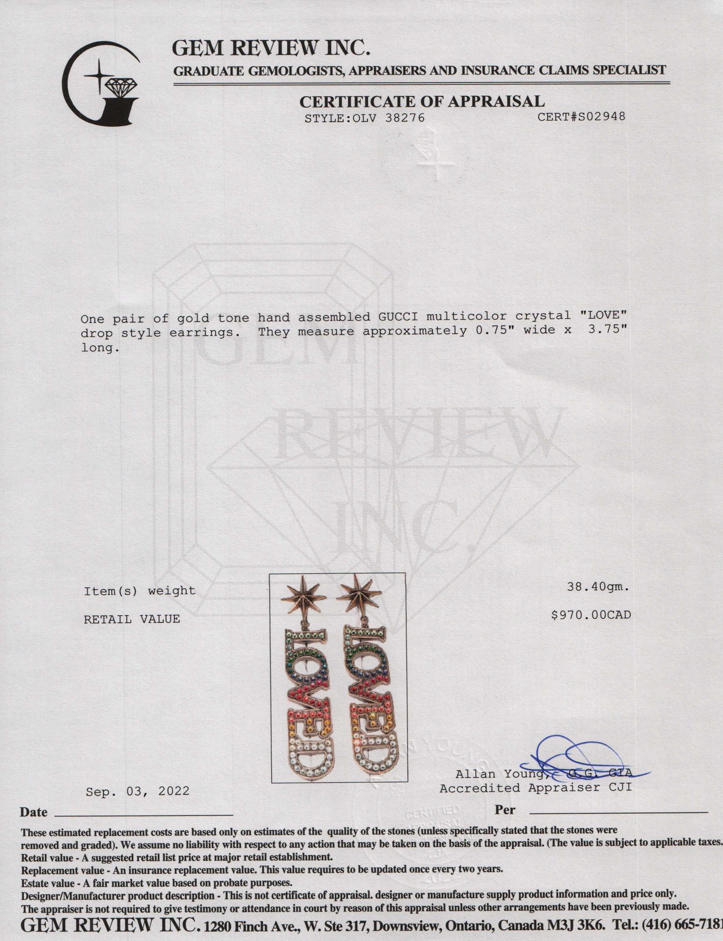 Gucci Multicolour Crystal 'Loved' Pendant Earrings