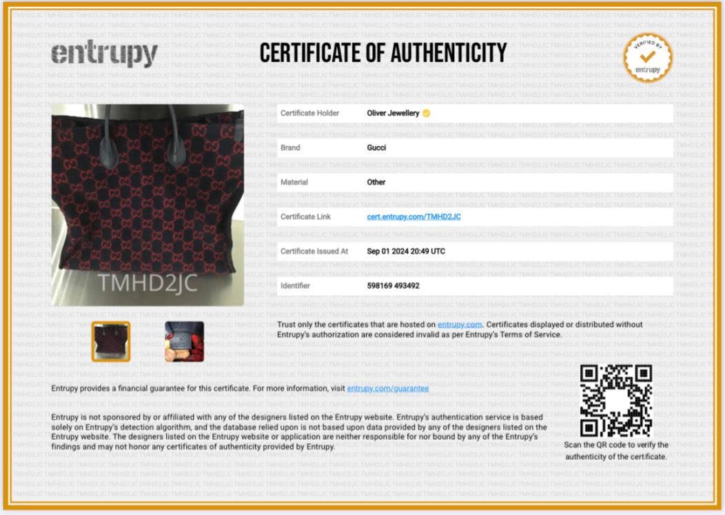 Dust Bag, Tag, Detachable Strap, Entrupy Certificate of Authenticity