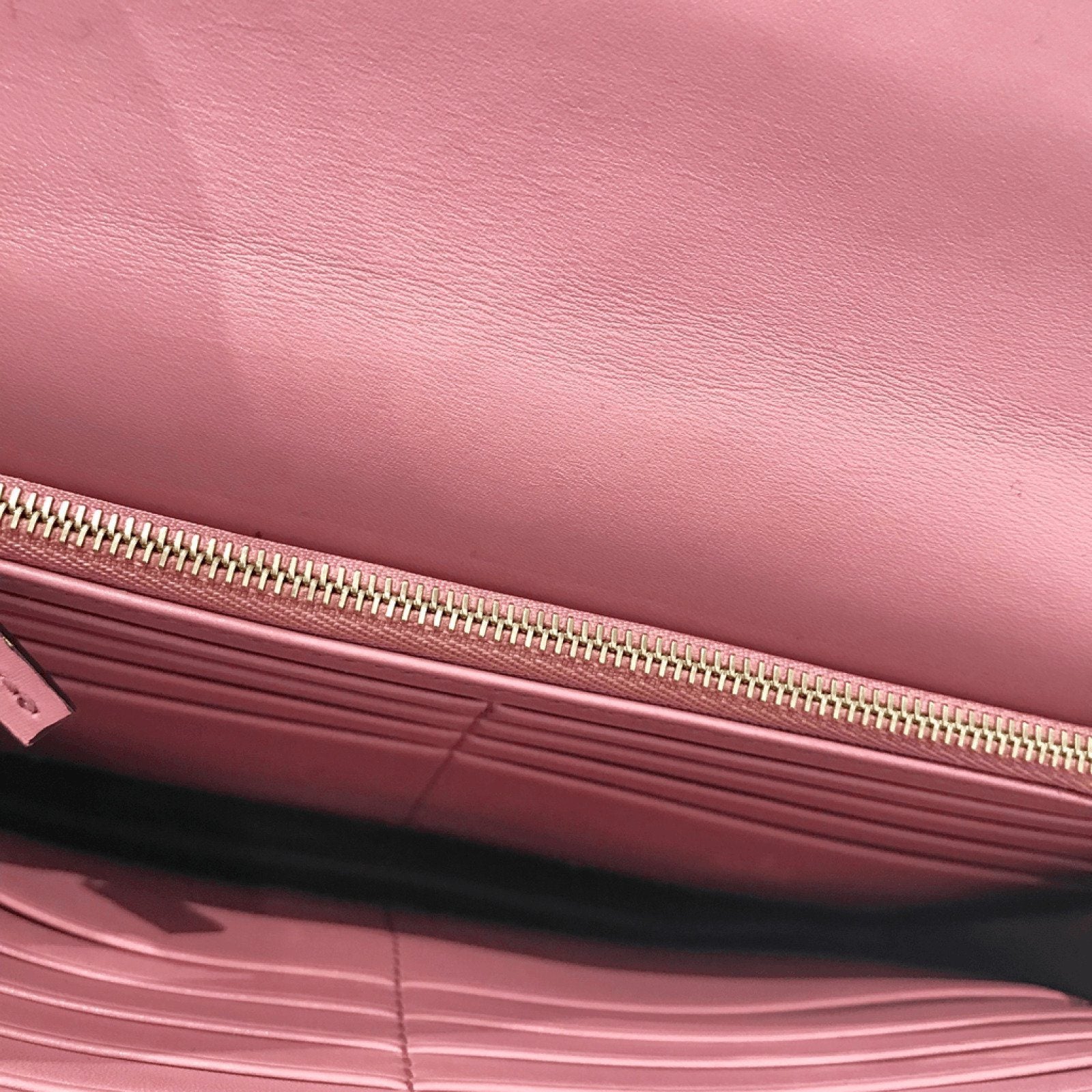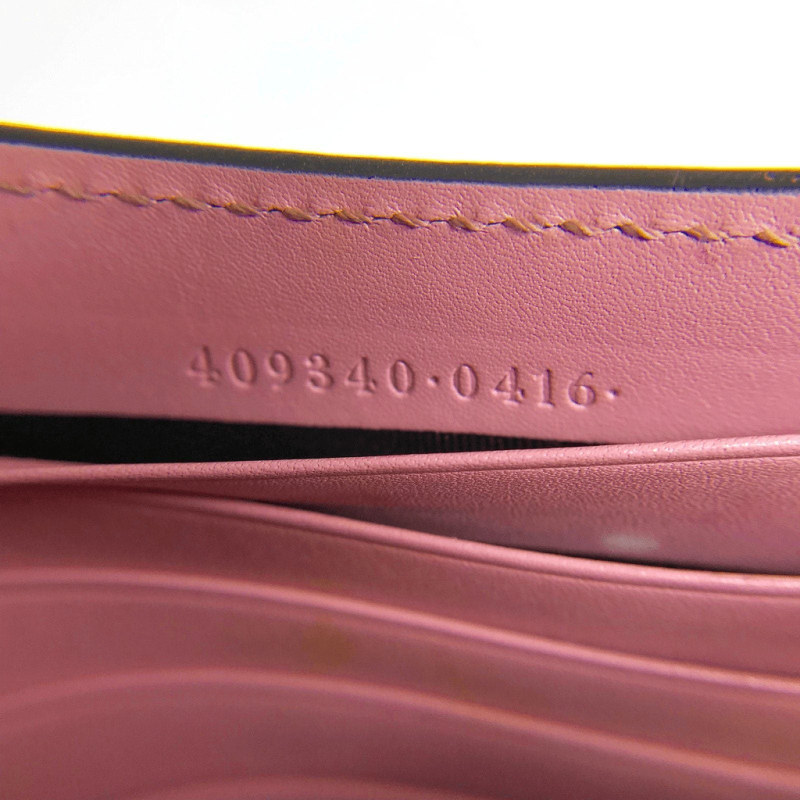 Gucci Icon Signature Chain Wallet; Color: Pink; Measurements: 4.5” x 7.5”; Serial #: 409340.0416; Comes with Original Gucci Dustbag
