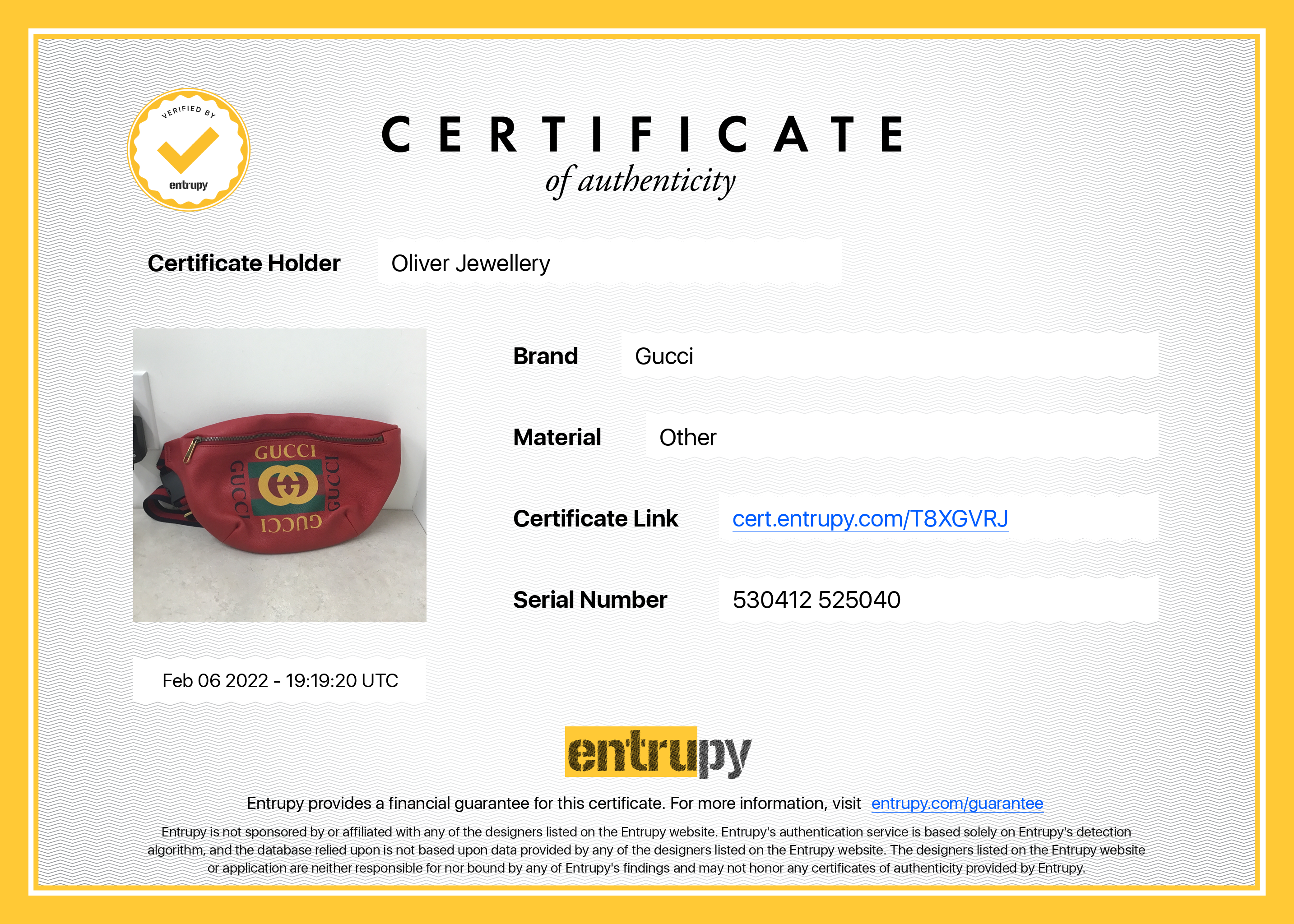 Included Items: Original Gucci Dust Bag & Entrupy Certificate of Authenticity #:T8XGVRJ